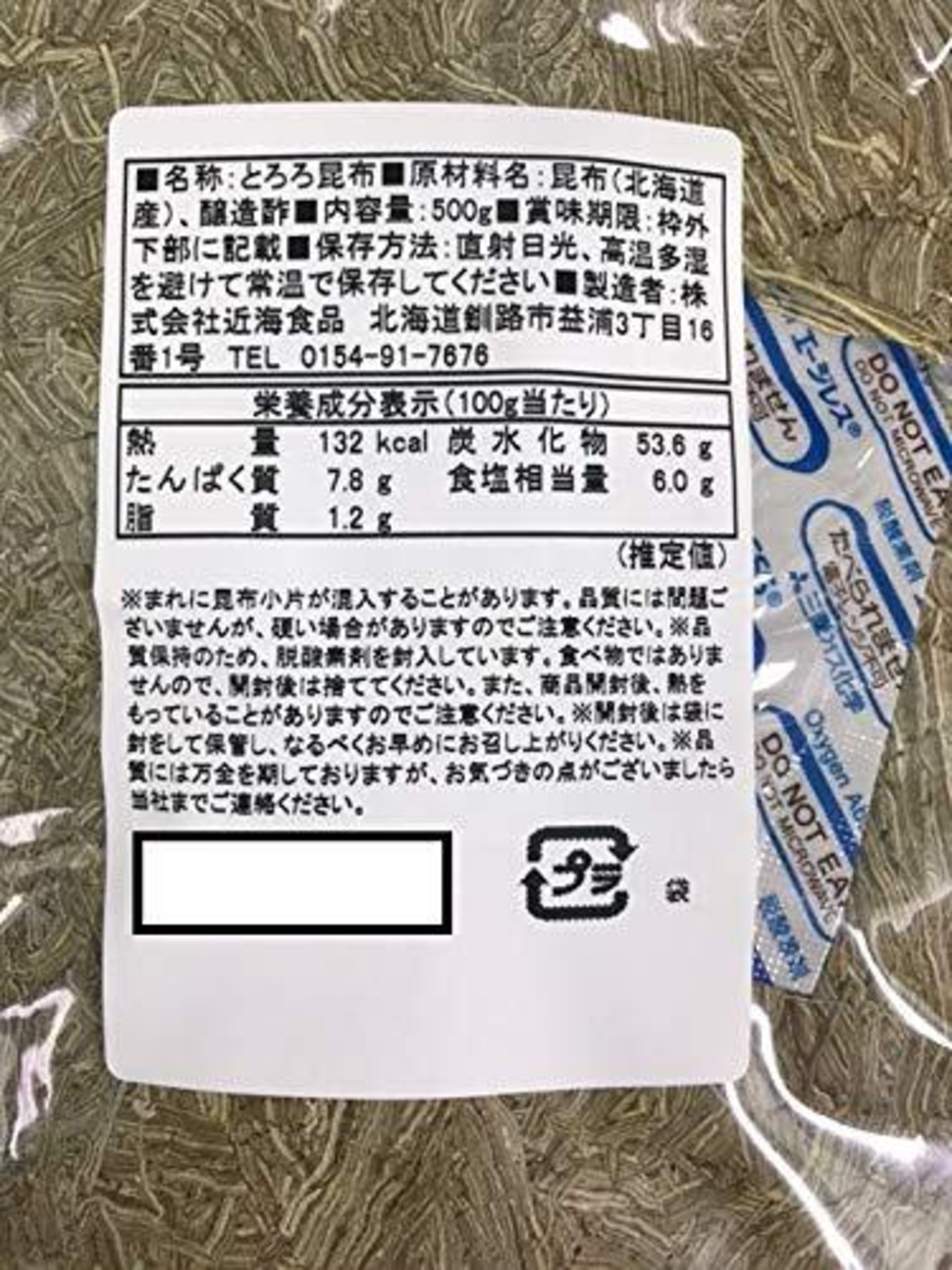 業務用とろろ昆布北海道産500g