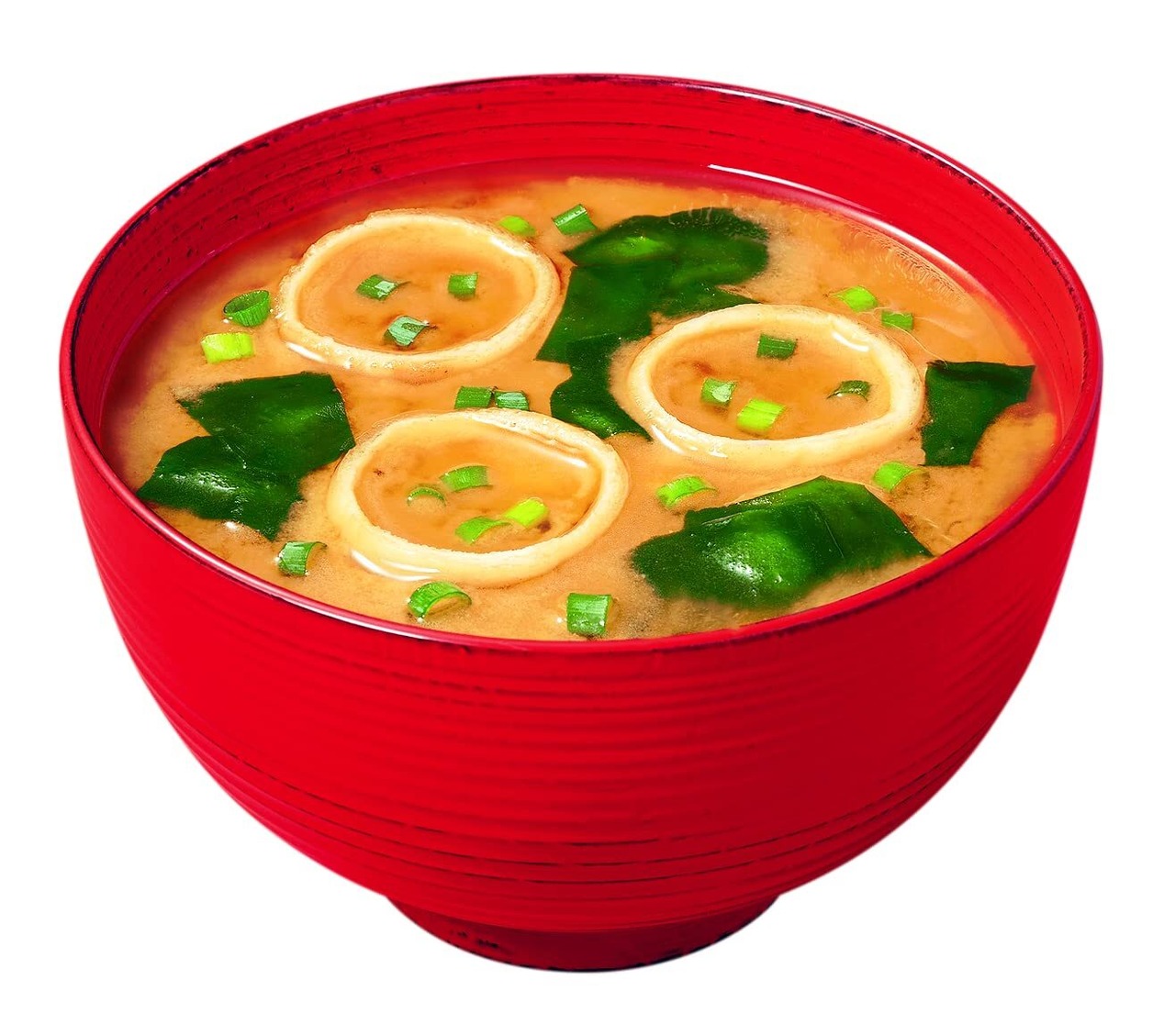 原材料:調味みそ:米みそ、酵母エキス、鰹削り節、食塩、昆布エキス、鰹節粉、煮干粉、酒精、調味料(アミノ酸等) 具:わかめ、ふ(小麦を含む)、調味顆粒(鰹節粉、デキストリン、煮干粉、食塩)、乾燥ねぎ、調味料(アミノ酸等)、酸化防止剤(ビタミンE)、クエン酸