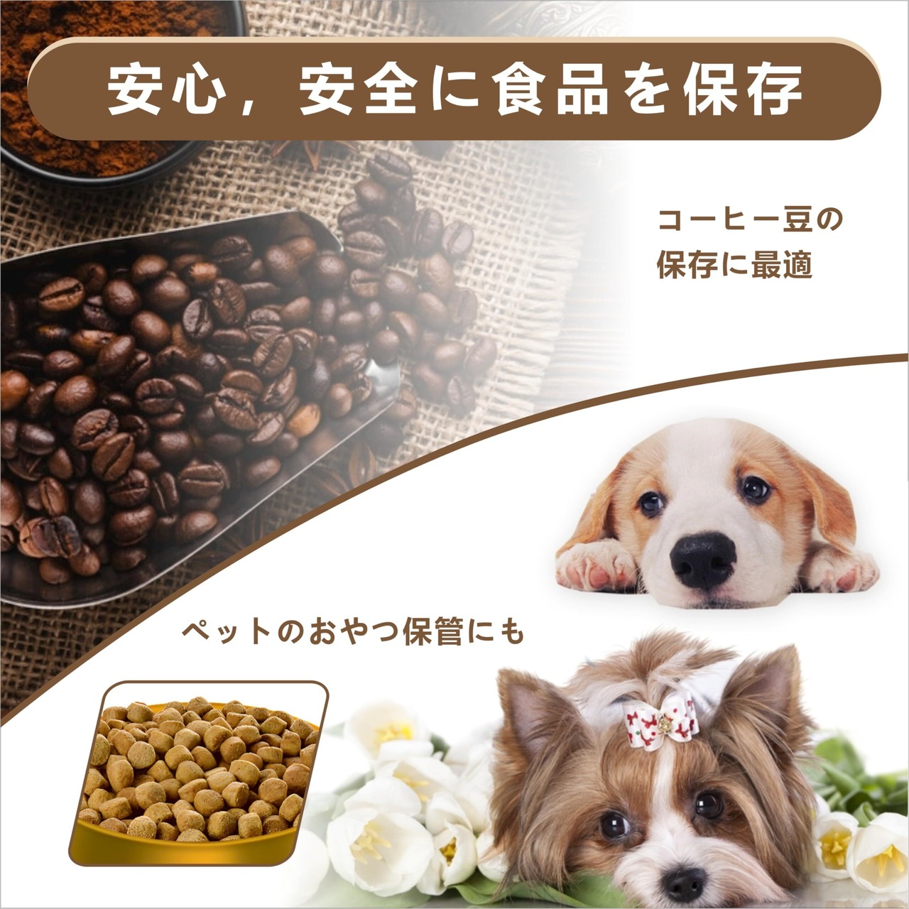 【場所を取らずに収納】新保存容器しい収納方法を提供します!このお米保存袋は袋タイプで、スペースを取らずに収納できます。また、底は自立するように設計されているため、縦に置きやすく、冷蔵庫などの空いているスペ-スに隙闇収納できます。お米、コーヒー豆、穀物、ペットフード、酸化しやすい食品、茶葉、乾燥野菜、海苔などの乾物を保存するのに使えます。