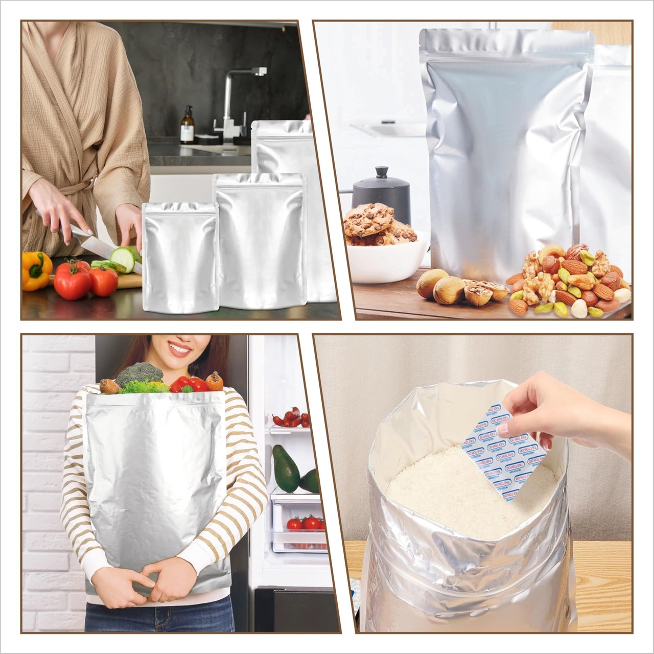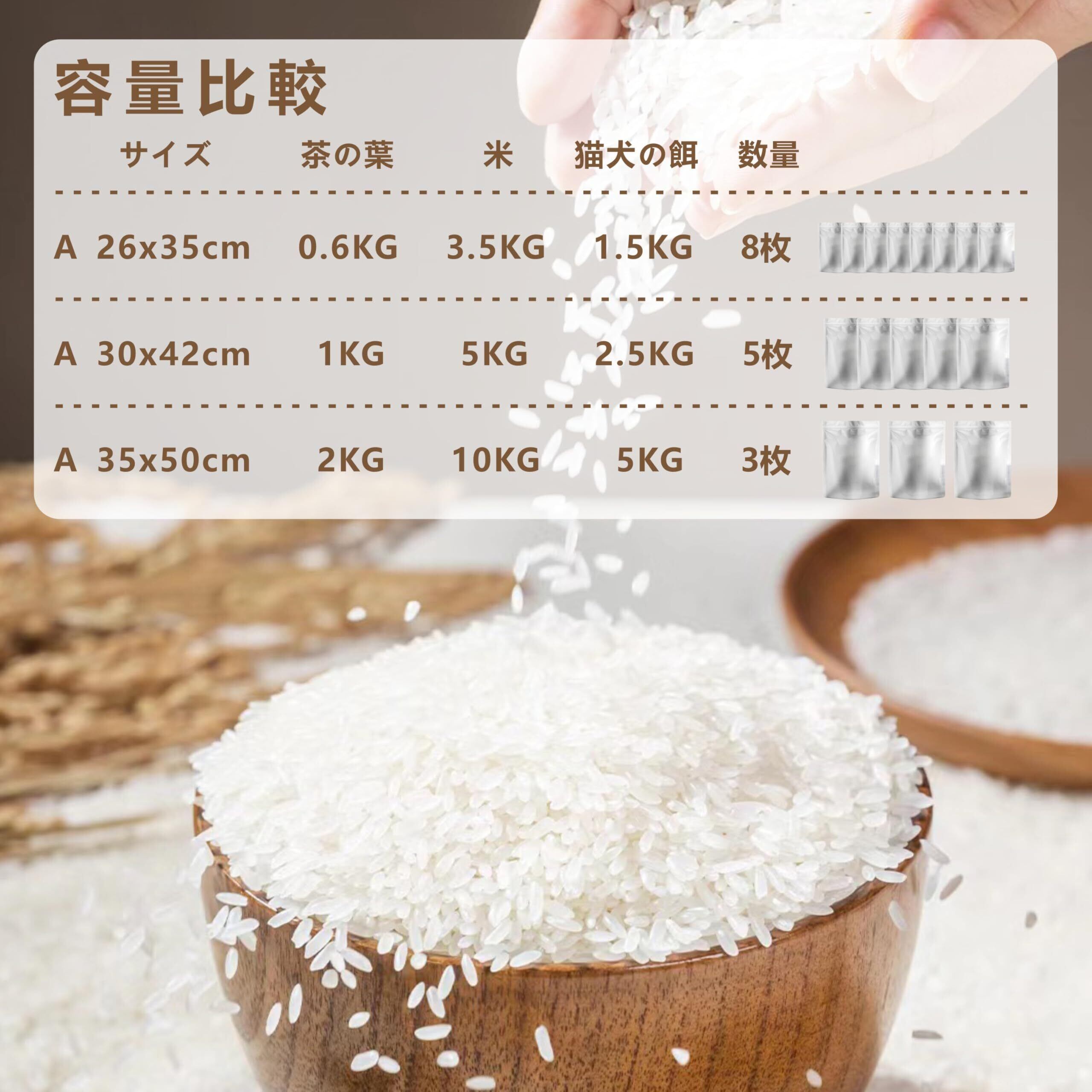 Rachil 米袋 3kg 5kg 10kg お米保存袋 お米 保存容器 密閉 米びつ アルミ袋 チャック付き 冷蔵庫 長期保存 防虫 遮光袋 お米冷凍容器 遮光 鮮度 食品 洗える Aセット(S)