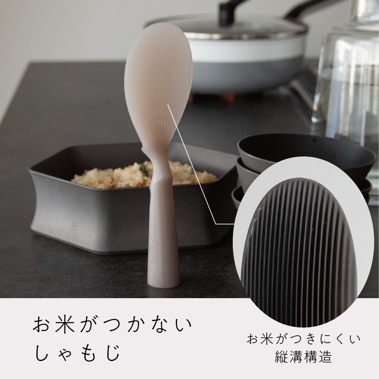 104lab. お米がつかない 立つ しゃもじ くっつかない 日本製 石川県 自社工場で生産 食洗機対応 杓文字 おしゃれ かわいい 杓文字 縦ライン 自立 衛生的 ピンクグレー お米 炊飯器 お米がこびりつかない 洗いやすい TPX 剥離性 つきにくい プラスチック キッチン ツール 雑貨 リビング 調理器具 21.5x 6.8 cm IJ ジュシラボ 石川樹脂工業