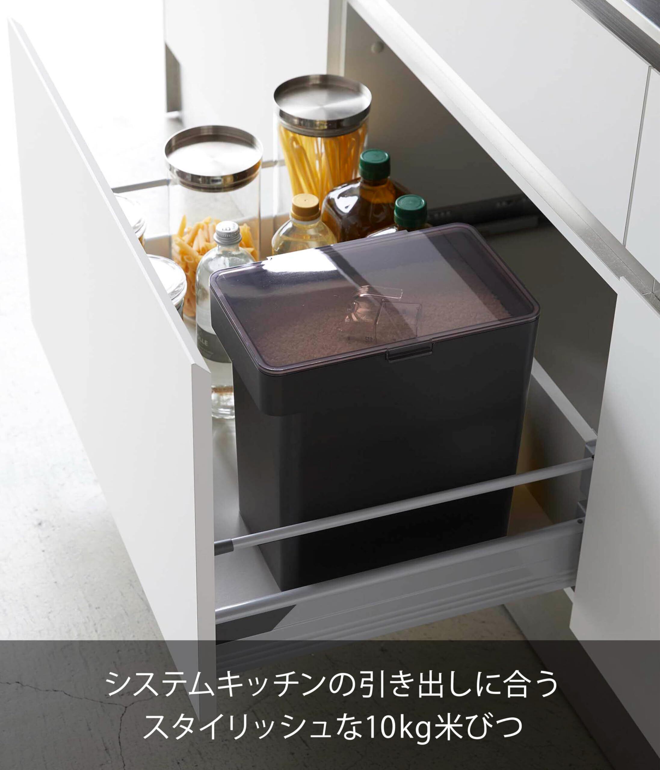 システムキッチンの引き出しに合うスタイリッシュな10kg用米びつ。