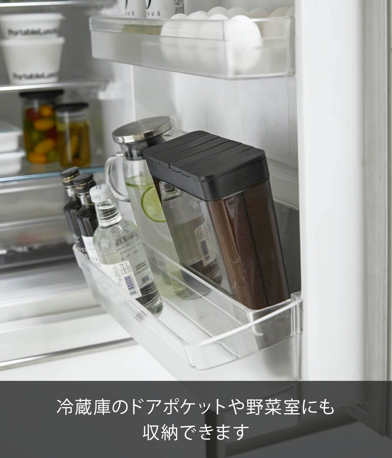 山崎実業(Yamazaki) 1合分別 冷蔵庫用 米びつ ブラック 約W18.5XD8.5XH24.5cm タワー 計量 ライスストッカー スライド式 3761
