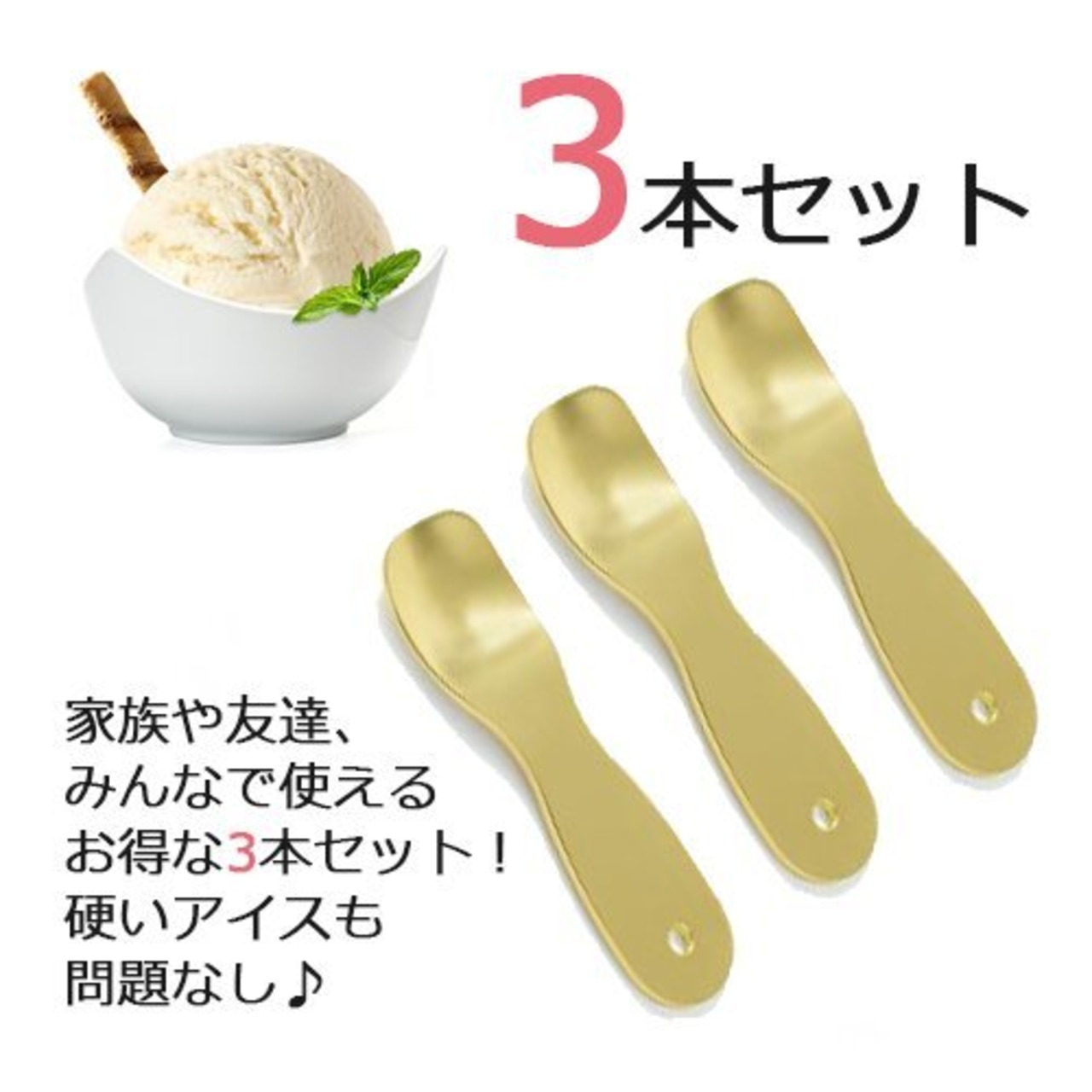 熱伝導に優れたアルミ製のスプーンでカチカチのアイスも滑らかに。 体温がアイスをじんわり溶かします。 上品なシャンパンゴールドが高級感を演出 お得な3本セットです!!
