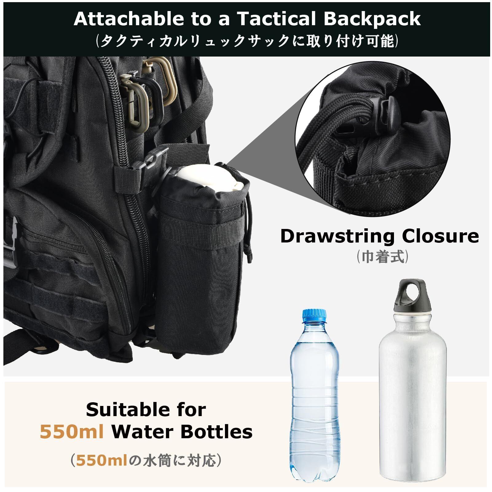 YAPJEB 水筒カバー 水筒ケース ペットボトル 水筒ポーチ ペットボトルホルダー モールシステム キャリー ミリタリー モール EDC ユーティリティポーチ 登山 バイク 徒歩 キャンプ (03 ブラック)
