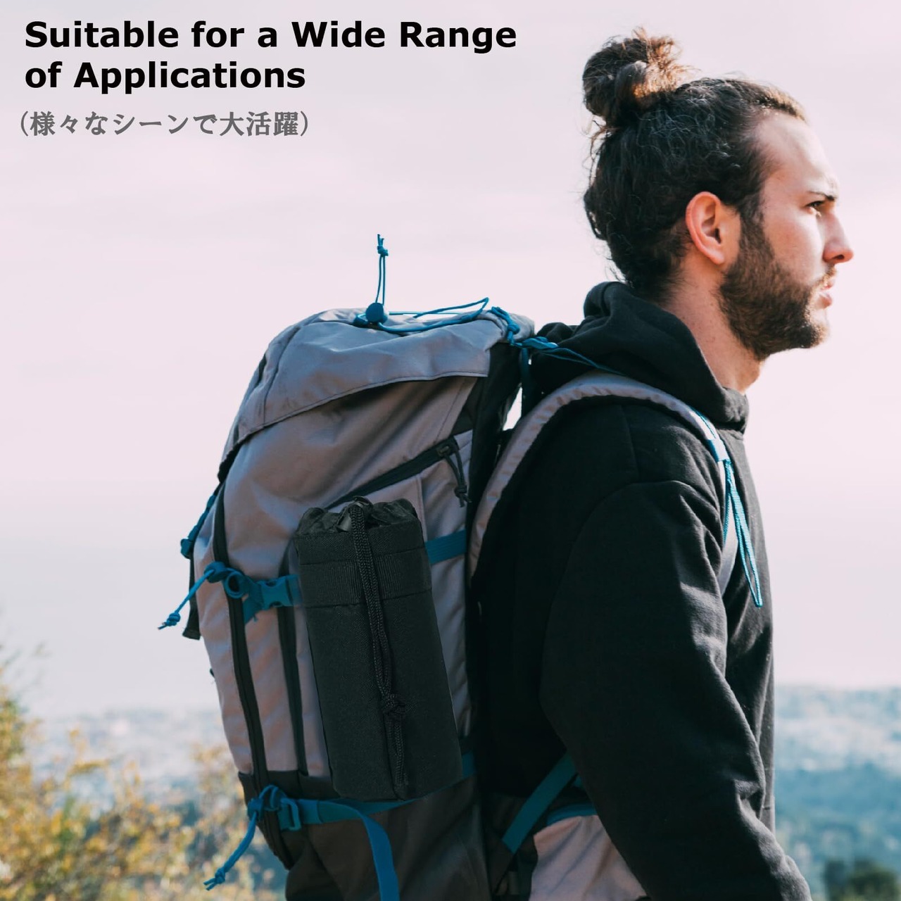 【大活躍】水筒ポーチはバイクのキャリア、リュックに後付け、子供のランドセルに付けられます。普段使いから登山、徒歩、キャンプなどのアウトドアまで幅広く活躍します
