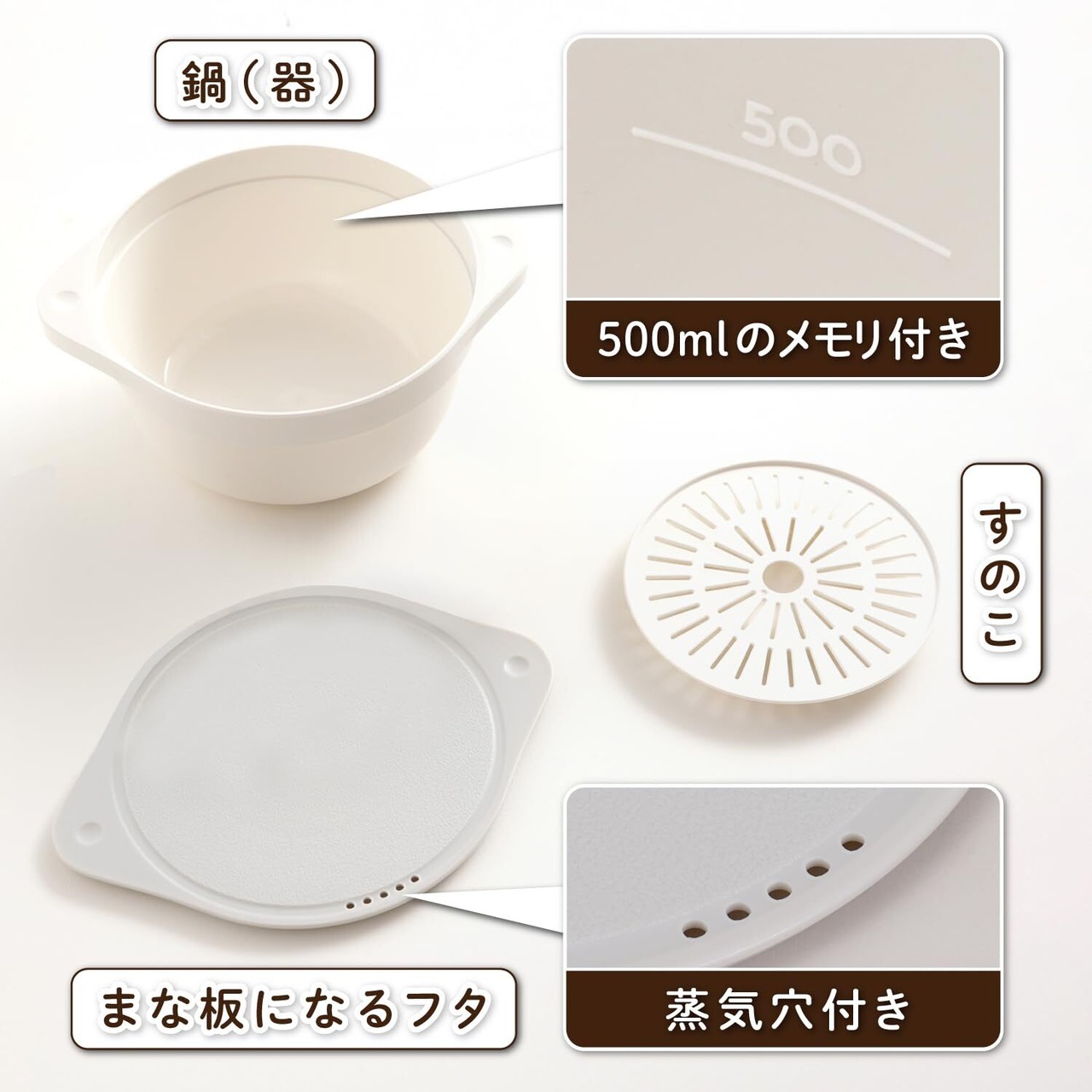 【電子レンジでマルチに使えるお鍋】:電子レンジで簡単調理。蒸し料理、一人鍋、ラーメンが作れる日本製のポット。