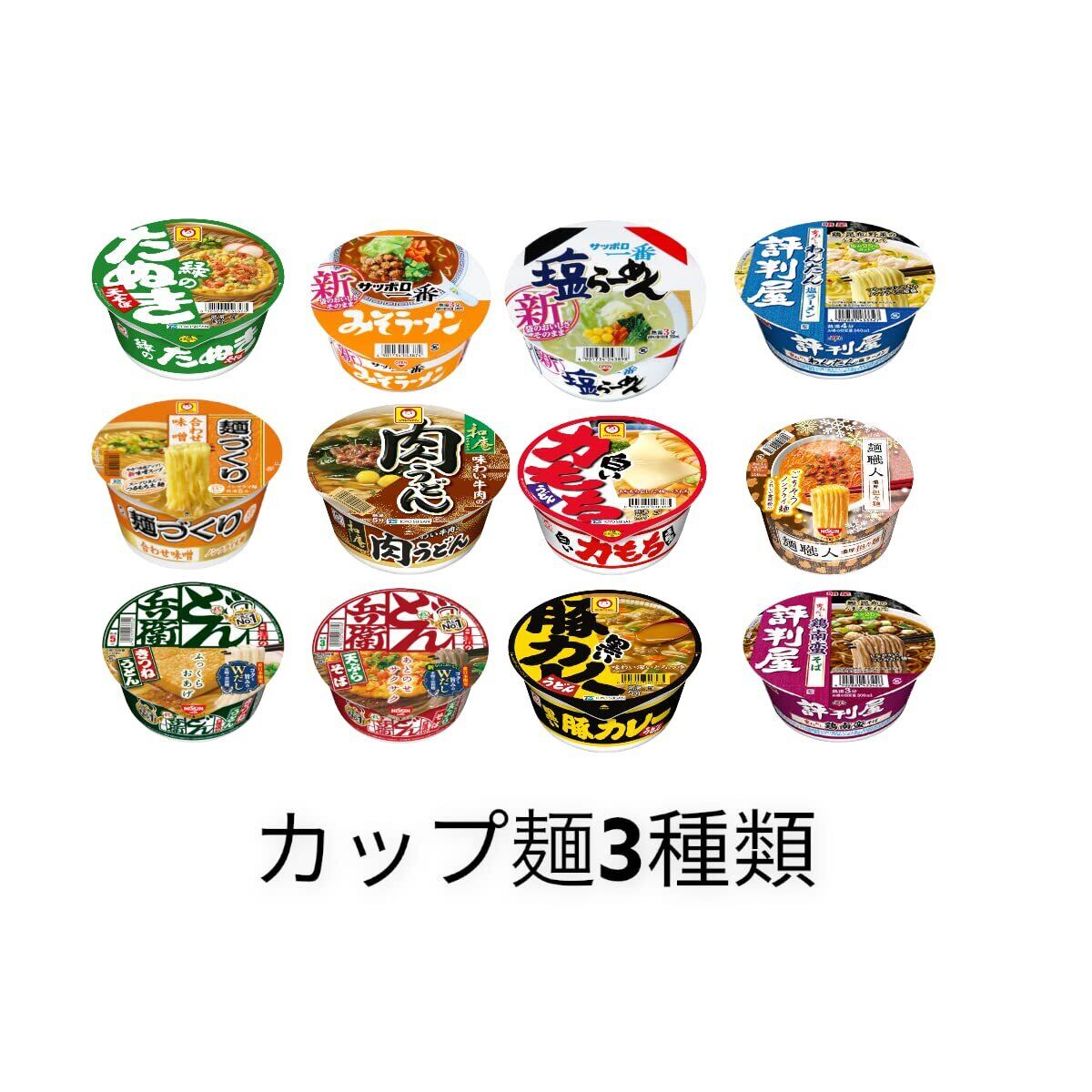カップ麺5種 カップ焼きそば2種 カレー2種 どんぶり3種 計12種