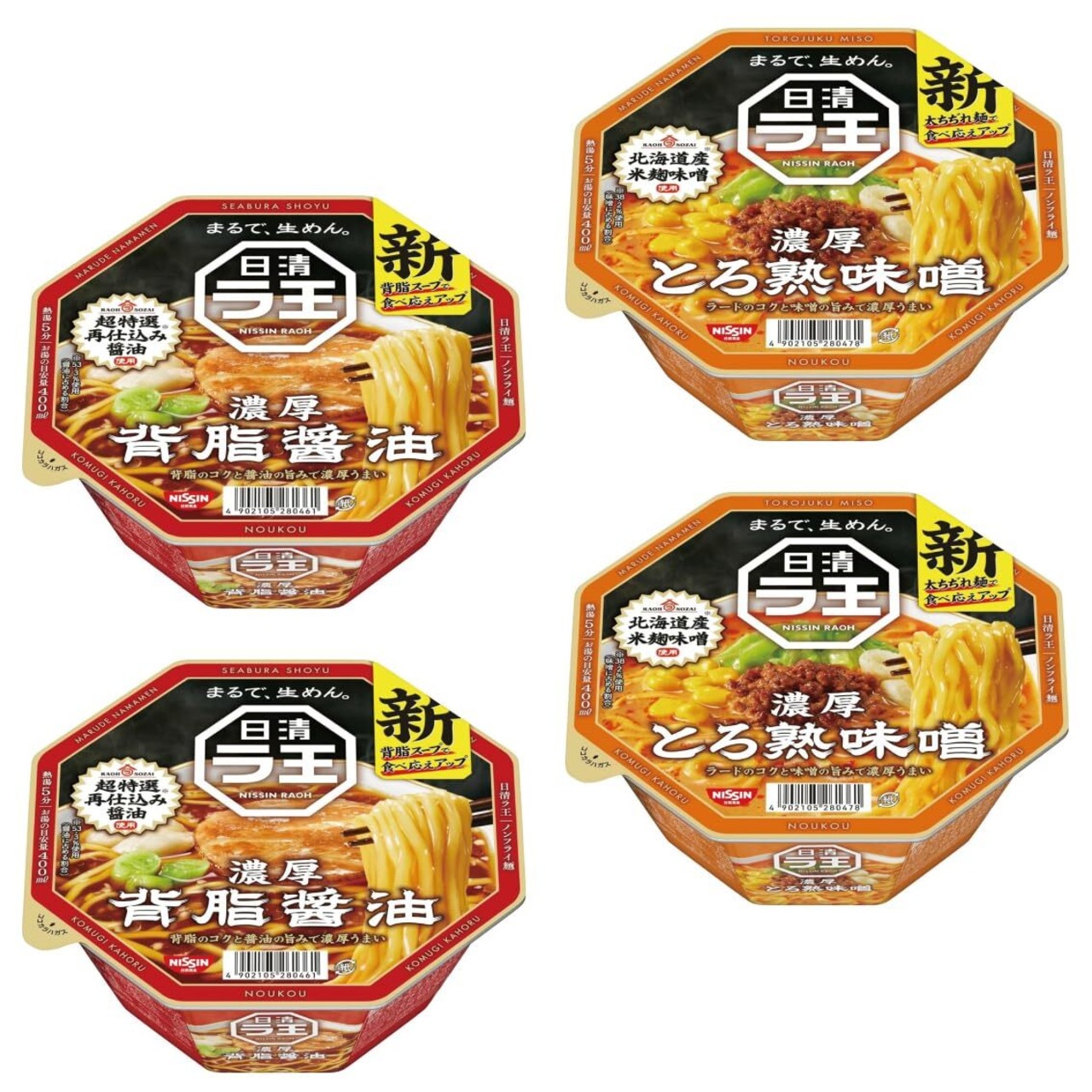 ラ王 カップ麺 2種類 詰め合わせ 4個セット 濃厚背脂醤油×2個 濃厚とろ熟味噌×2個 | おいしくリニューアル 濃厚うまい一杯が ここに誕生