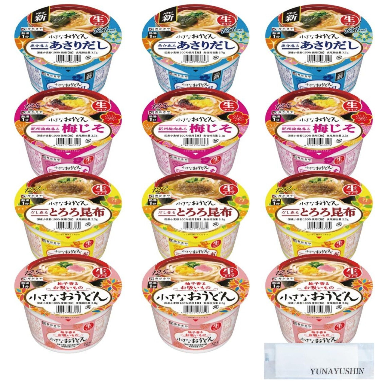 寿がきや 小さなおうどん 詰め合わせ 4種類 12個 YUNAYUSHIN お手拭きセット | お吸いもの 梅じそ とろろ昆布 あさりだし 各3食ずつ | 1分待ってすぐおいしい あともう一品にちょうど良い量