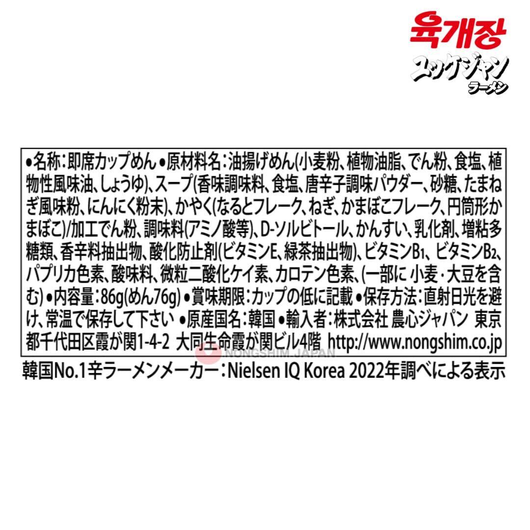 商品説明:1982年に農心初の容器タイプラーメンとして韓国で発売し、以降約40 年間にわたり、人気のロングセラー商品。唐辛子の辛さが効いた韓国伝統のユッケジャンを再現した味で、麺とスープの相性も抜群。麺はなめらかな口当たりとしなやかなコシを併せ持った細麺です。