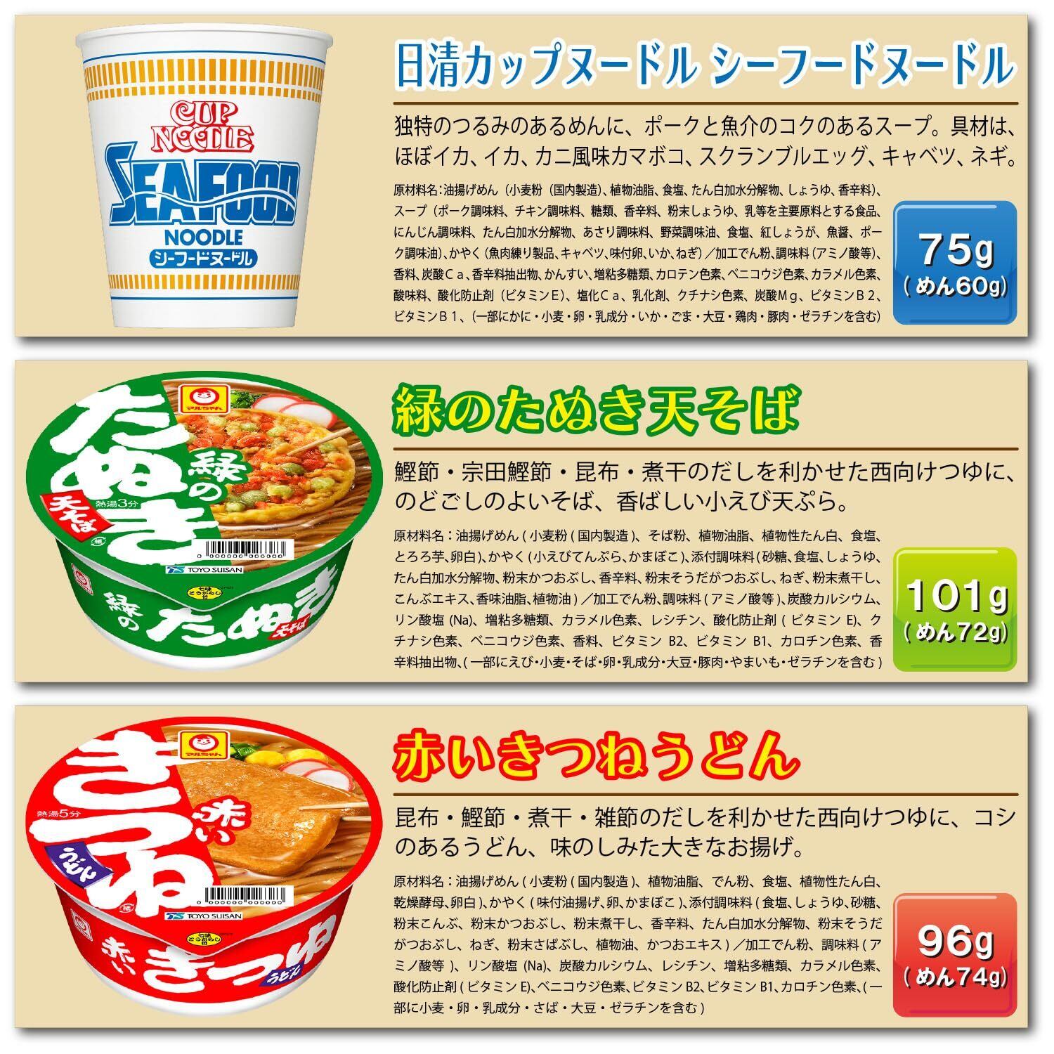 日清食品や東洋水産、サッポロ一番など様々なメーカーの商品が同梱されています。