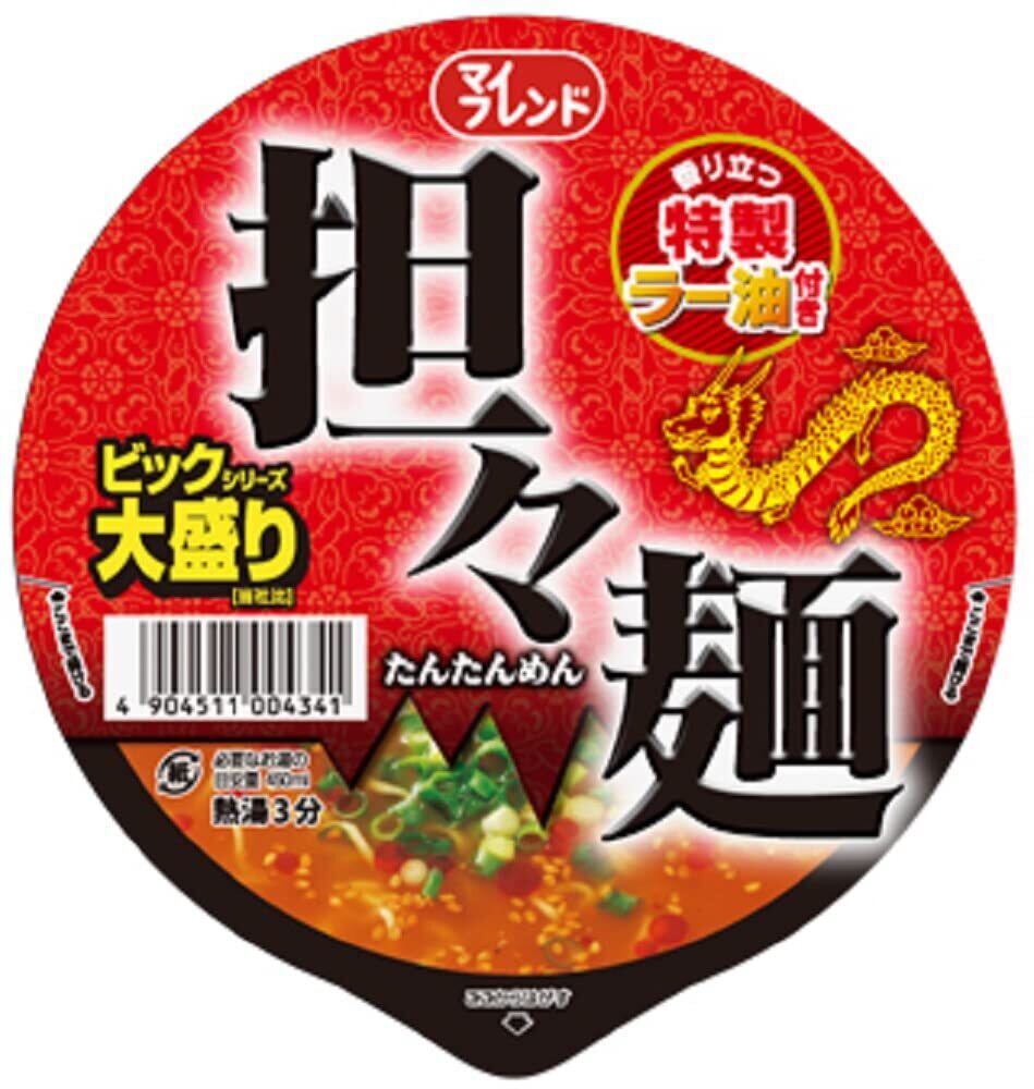 油揚げめん(小麦粉(国内製造)、植物油脂、食塩)、かやく入り粉末スープ(ごま、食塩、砂糖、香辛料、みそ、ねぎ、しょうゆ、たん白加水分解物、ポークエキス、ごま油、酵母エキス、デキストリン)、調味油(植物油脂、香味油)/加工でん粉、調味料(アミノ酸等)、増粘多糖類、炭酸Ca、かんすい、酸化防止剤(ビタミンE、ローズマリー抽出物)、パプリカ色素、クチナシ色素、微粒二酸化ケイ素、カラメル色素、香辛料抽出物、香料、ビタミンB2、ビタミンB1、(一部に小麦・大豆・豚肉・ごまを含む)
