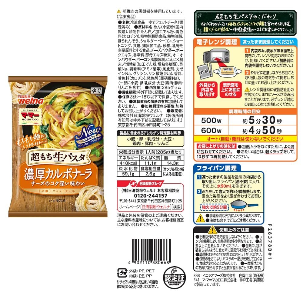 [冷凍] 日清製粉ウェルナ マ・マー 超もち生パスタ 濃厚シリーズ 4種X各2個 バラエティセット 2230g