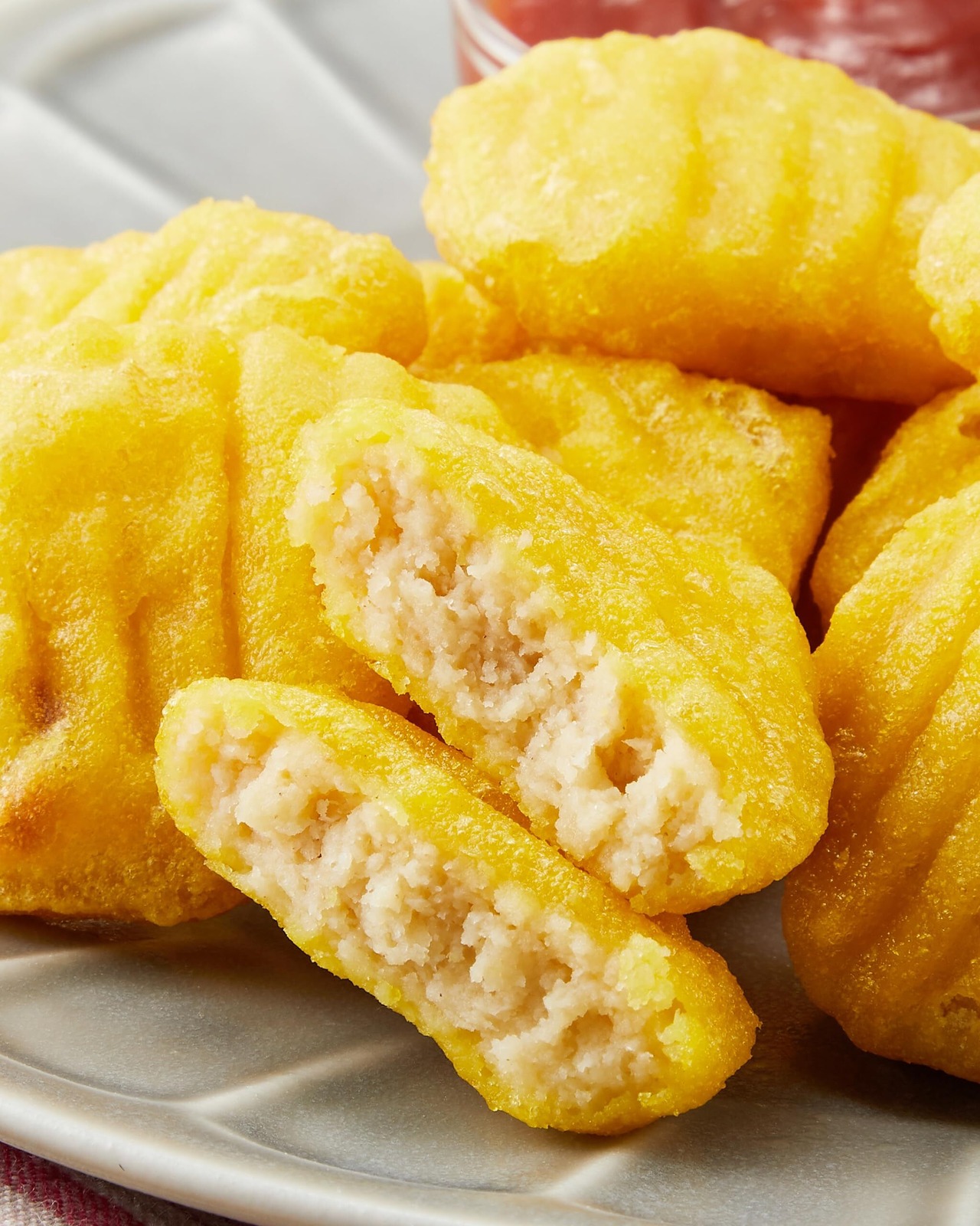 鶏肉(タイ又は日本)、鶏皮、コーンフラワー、小麦粉、パン粉、でん粉加工品、食塩、植物油、でん粉、牛乳、醸造酢、香辛料、ぶどう糖、卵白末、たん白加水分解物、チキンスープパウダー、チキン風味調味料、全卵末、揚げ油(植物油)/加工デンプン、調味料(アミノ酸等)、くん液、ピロリン酸Na、酸味料、ベーキングパウダー、乳化剤、増粘剤(キサンタンガム)、酸化防止剤(ビタミンE)、着色料(クチナシ、パプリカ色素)、香料、(一部に卵・乳成分・小麦・大豆・鶏肉を含む)