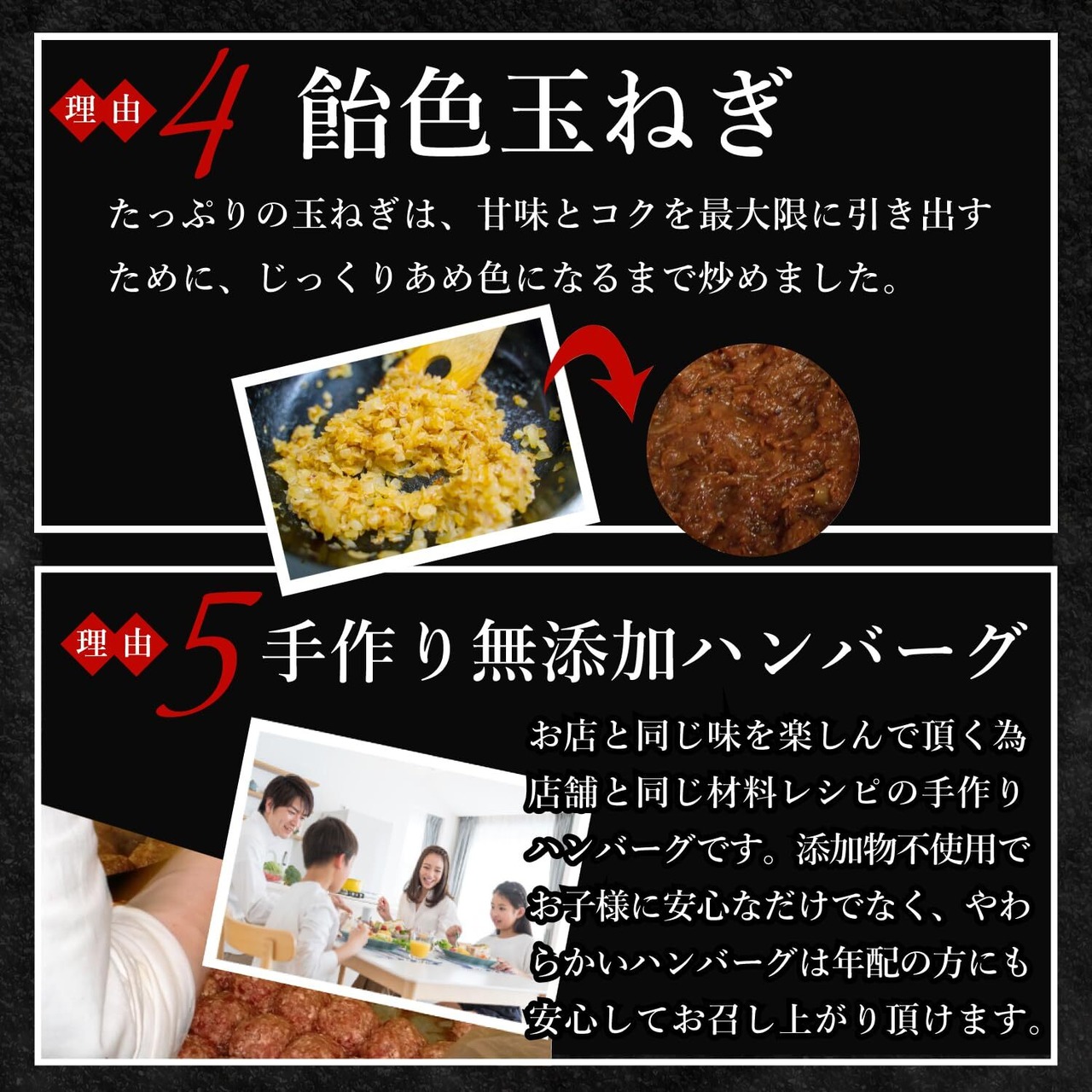 【 本物の味へのこだわり】bonboriのハンバーグはお店と同じ味を楽しんでいただくために、同じ材料、同じレシピの手作り「無添加」ハンバーグです。添加物不使用のやわらかいハンバーグは小さいお子様や、年配の方にも安心してお召し上がり頂けます。