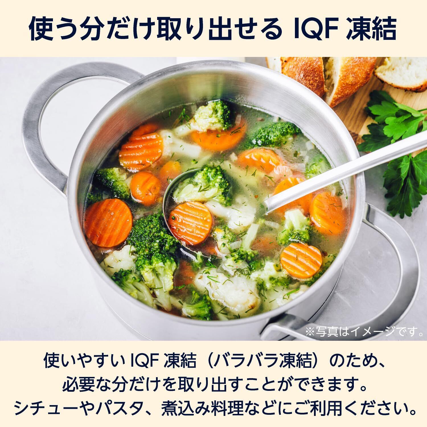 by 冷凍洋風野菜ミックスは旬の時期に収穫されたブロッコリー、カリフラワー、にんじん、いんげんを、ミックスして冷凍しています。シチューやパスタ、煮込み料理にご利用いただけます。 1. IQF凍結なので、使いたい分だけを取り出してご利用いただけます。 2. 1kgの大容量 3. 旬の時期に収穫された色鮮やかな原料を、軽く湯通しして冷凍しています。 4. 指定の契約農場で栽培された原料を使用しており、産地から一貫した管理を行っております。