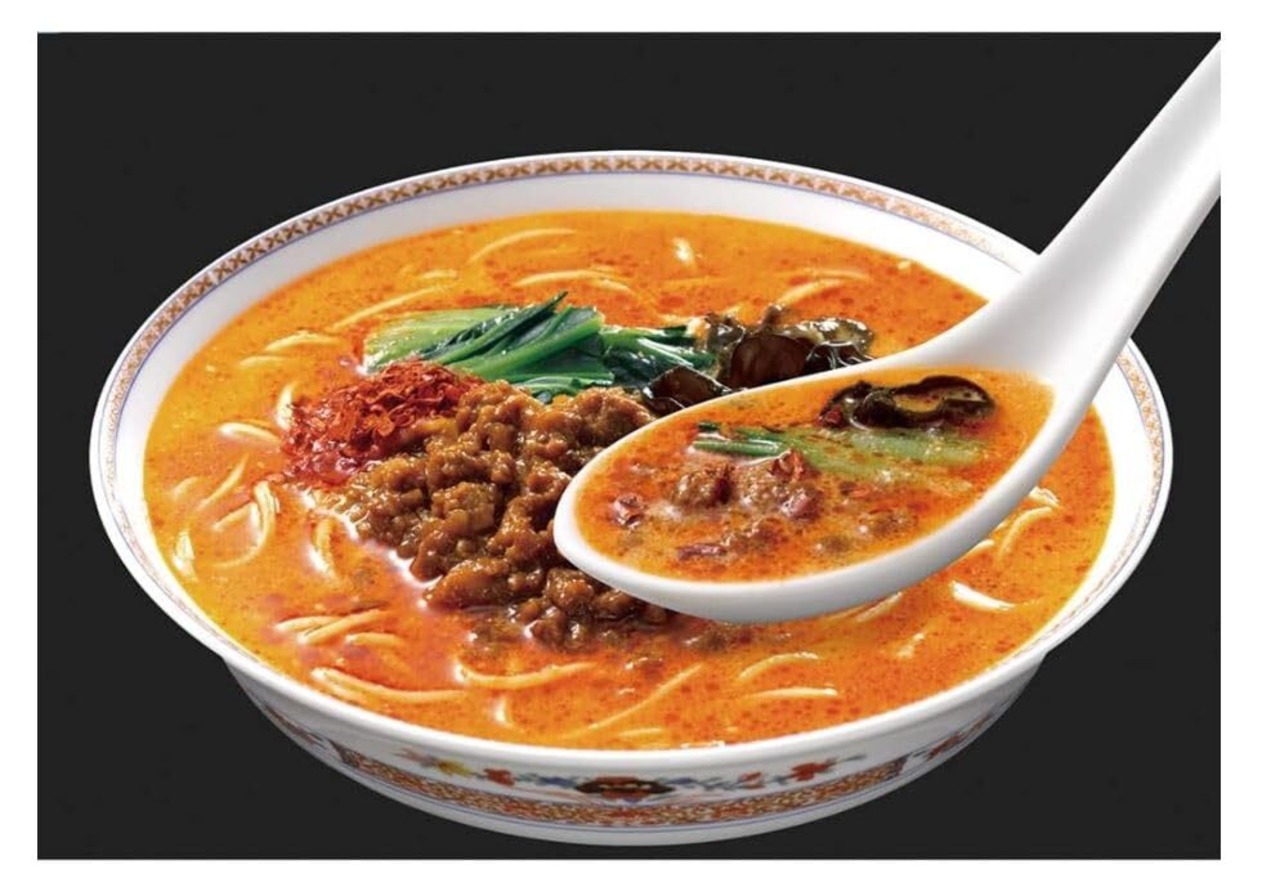 原材料: めん〔小麦粉(国内製造)、卵粉、小麦たん白、食塩/かんすい、焼成Ca、クチナシ色素〕、野菜(チンゲン菜、ねぎ)、しょうゆ、ねりごま、ポークエキス、豚肉、植物油脂、ごま、きくらげ、豚脂、豆板醤、など。