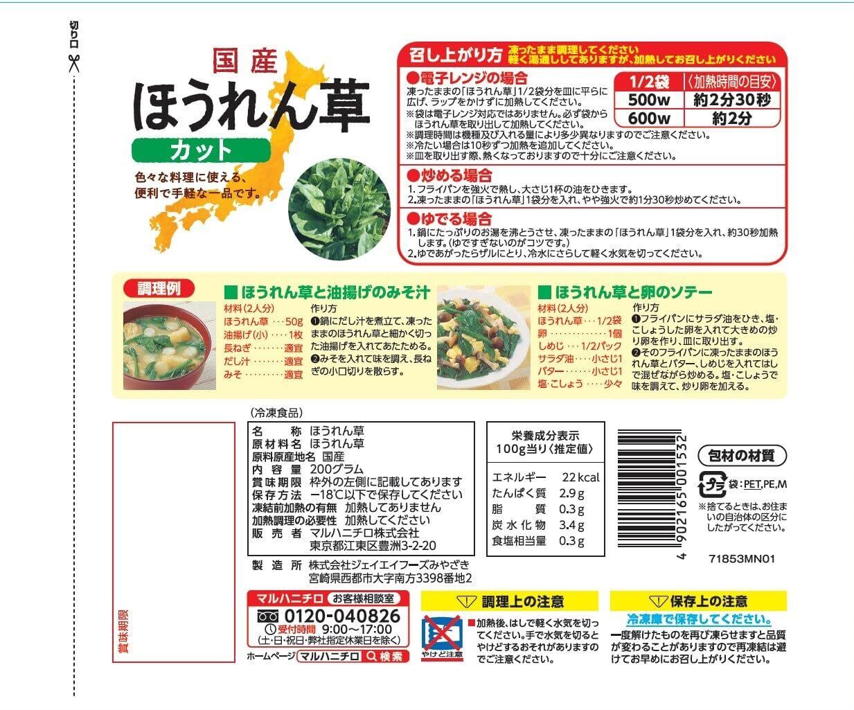 [冷凍] マルハニチロ 国産ほうれん草カット 200g ×5個