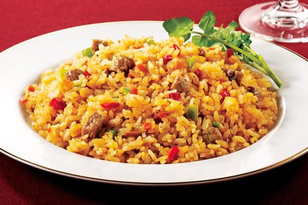 老舗洋食屋たいめいけん三代目の茂出木浩司シェフと作った、角切りしたステーキが入ったサイコロステーキピラフです。隠し味にソテーオニオンを使用し、ピラフらしいバターの風味と醤油の香りにこだわっています。シェフこだわりの洋食屋の味わいをご自宅でお楽しみいただけます。