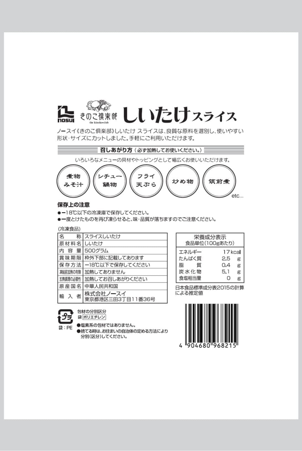 [冷凍] ノースイ しいたけスライス 500g×4袋 大容量 業務用 便利 簡単調理