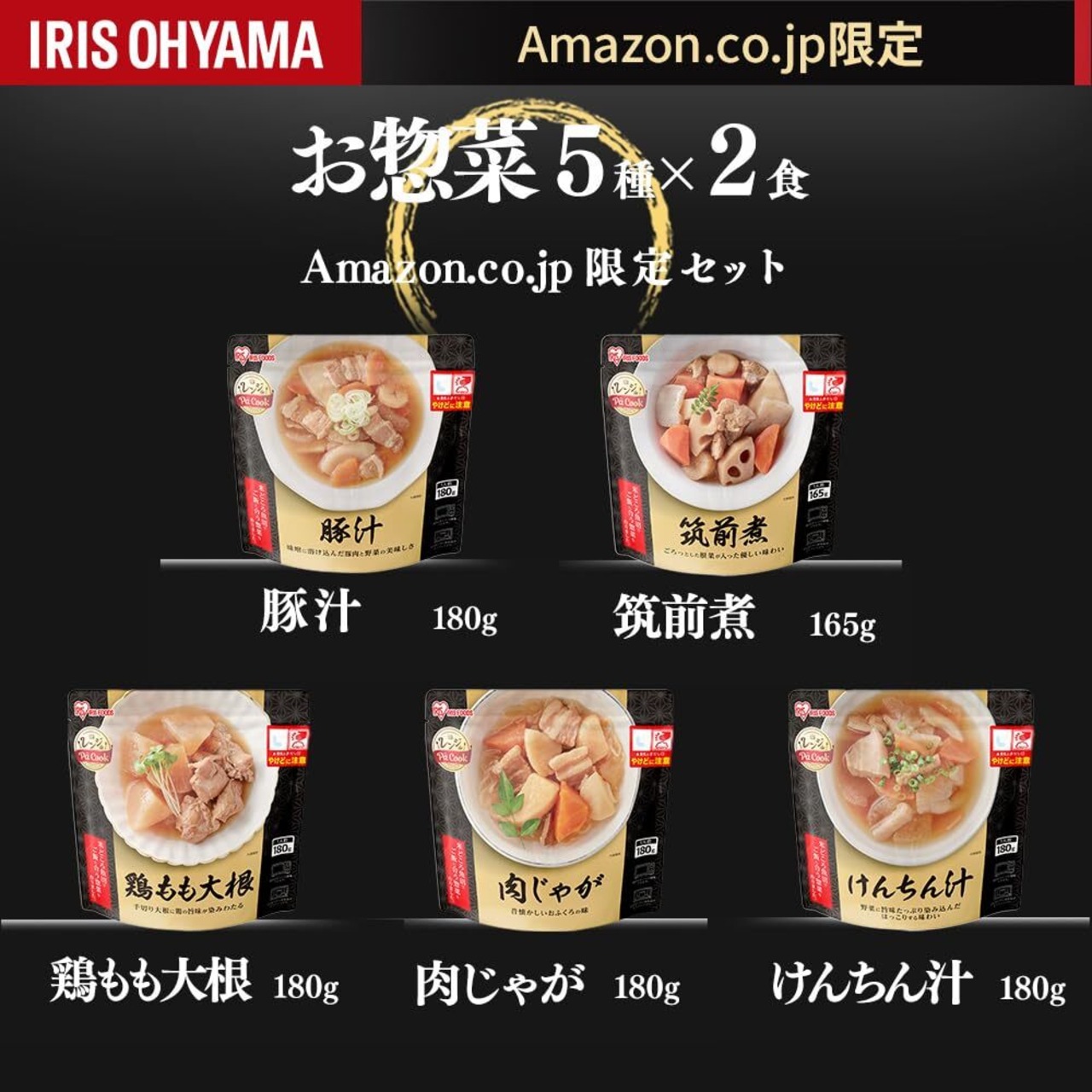アイリスオーヤマ(IRIS OHYAMA) レトルト おつまみセット 5種10食パック 肉じゃが 筑前煮 豚汁 けんちん汁 鶏もも大根 惣菜 レトルト食品 おかず 一人暮らし 常温保存 非常食 保存食 電子レンジ 和食 パウチ レンチン レンジde Pa Cook