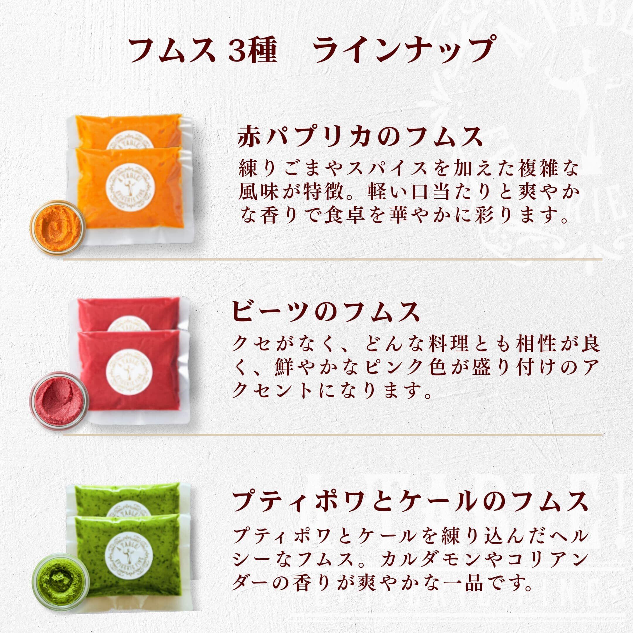 フムス 3種セット(各80g×2・計6パック)【 アペロ オードブル ヘルシーで濃厚な豆のディップ ヴィーガン対応 】A TABLE! ~EPICERIE FINE~