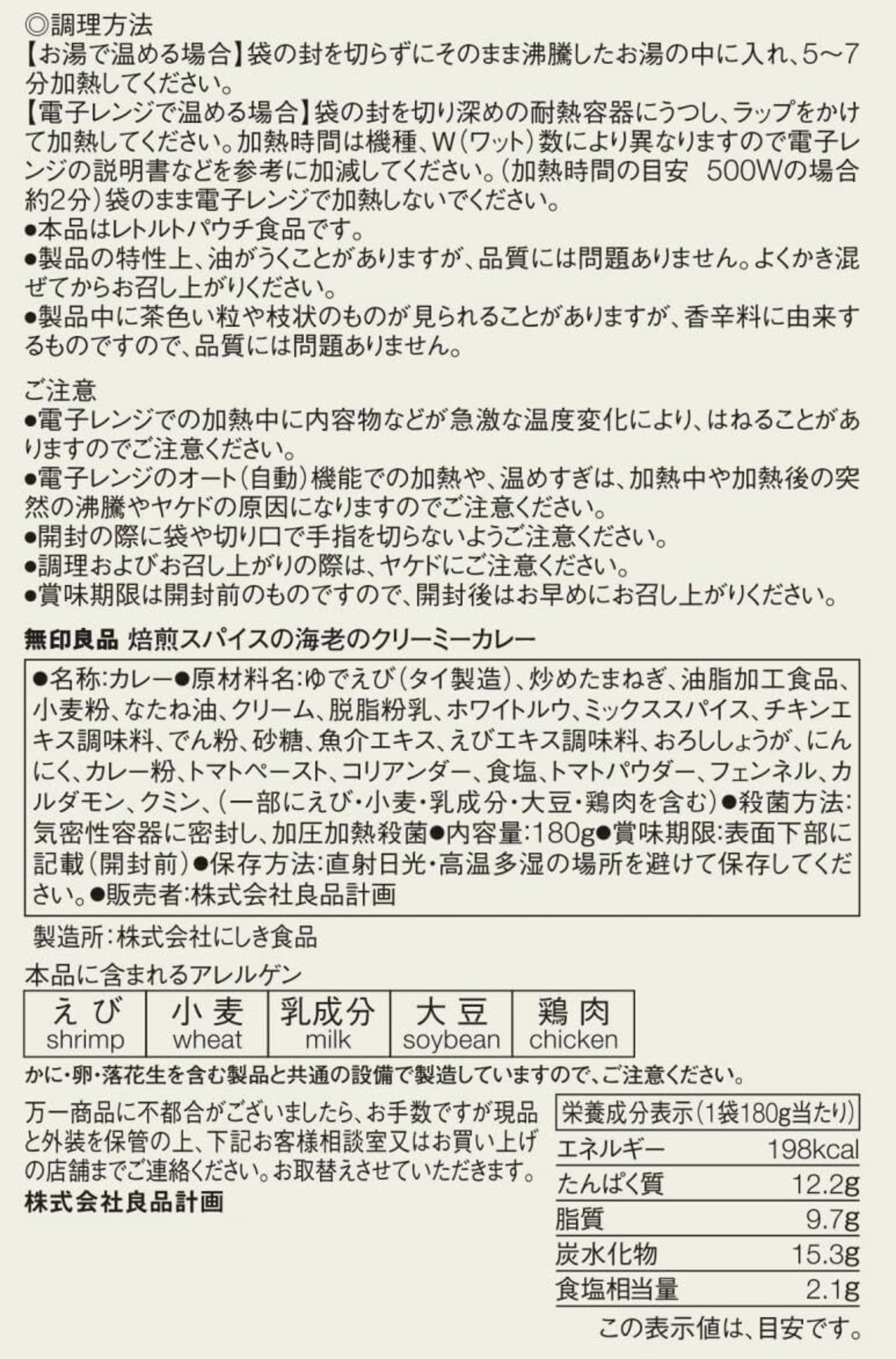 無印良品 焙煎スパイスの海老のクリーミーカレー 180g[1人前] TCZ83A4A