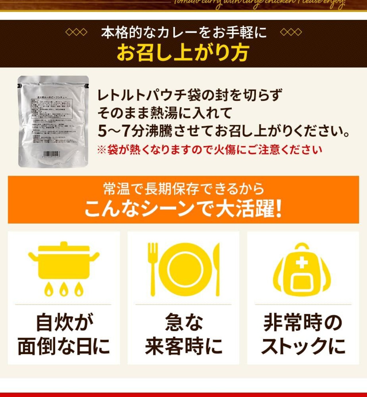 南部どりを使用した、トマトカレー。本当に美味しいカレーをお届けする為に守り続けている「コスモ直火焼き製法」 手間を惜しまず味を犠牲にしない「直火焼き製法」で作り続けています。