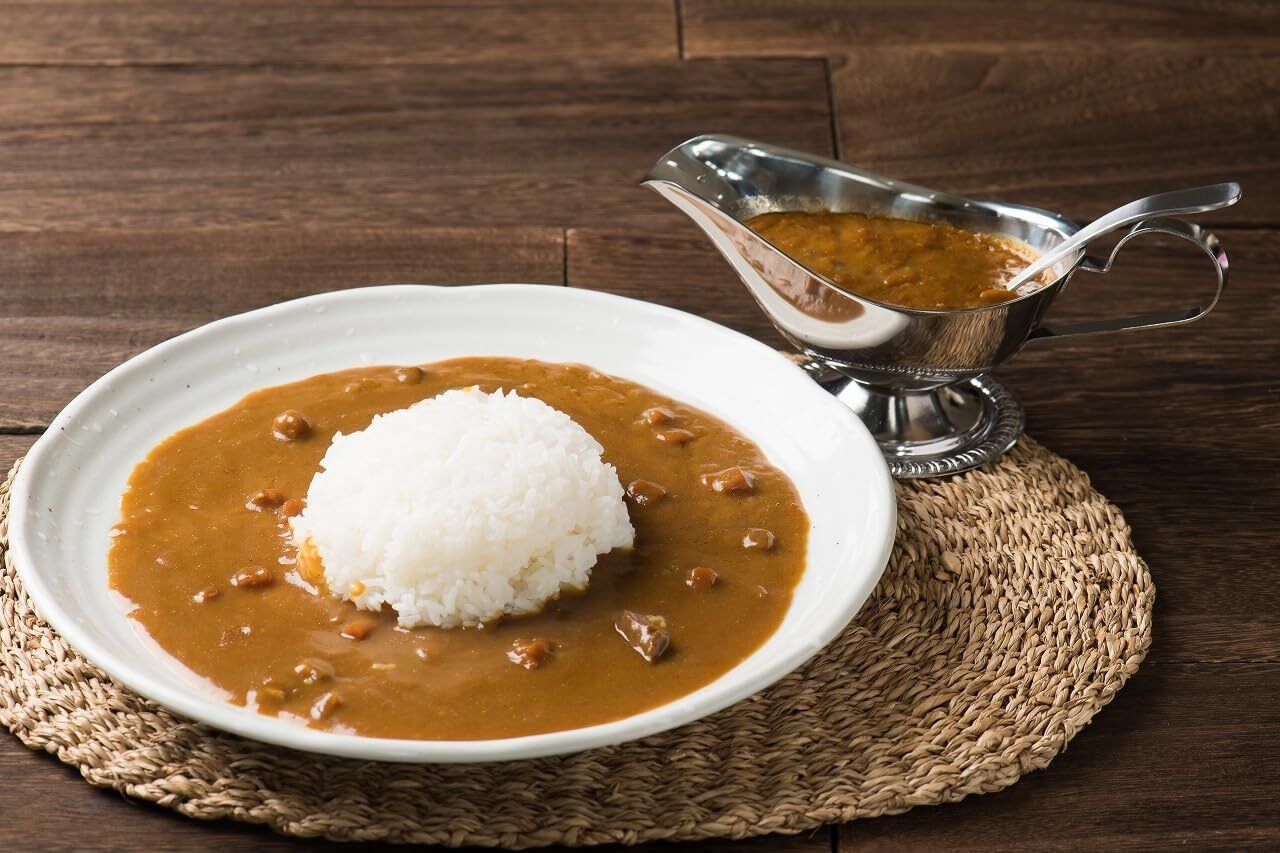 特徴:あっさりとしたチキン味をベースに、ソテーした玉葱の甘みとフルーツの酸味、各種スパイスを馴染ませた牛肉を煮込んだ中辛ビーフカレーです