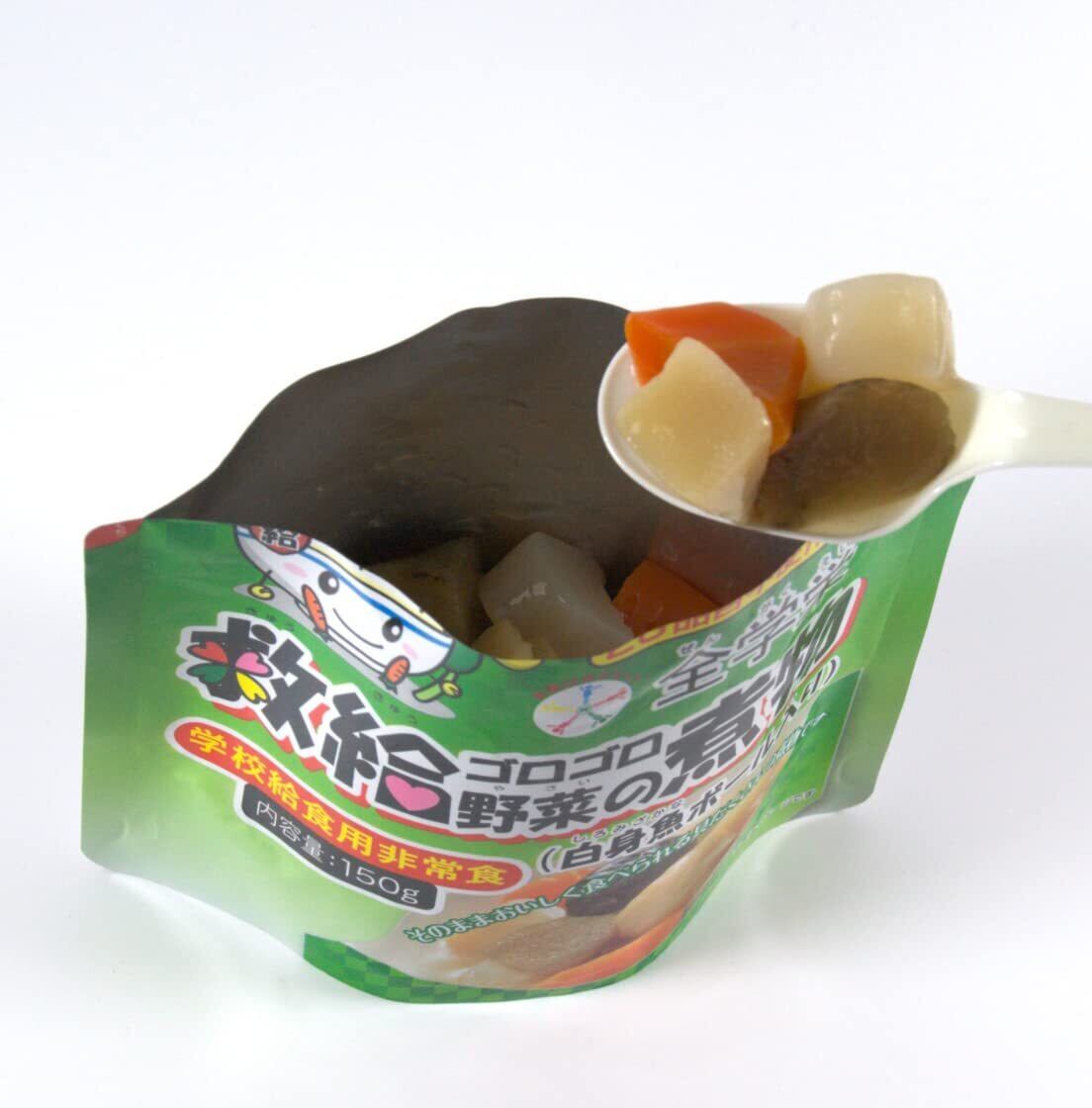 野菜たっぷりの和風おかずタイプの非常食です。災害時に不足しがちなたんぱく質や食物繊維がとれるようにたっぷりの野菜類に白身魚ボールを配合しました。 激甚災害等によりライフラインが途絶えた中で、救援物資が届くまでの72時間の間「いのちをつなぐ」ためのおいしい非常食を、全国の栄養教諭・学校栄養職員が専門職ならではのこだわりをもって開発されました。 大切な子供たちの災害時の栄養バランスに寄与するために学校給食の厳しい安全安心の条件をクリアして開発・製造された非常食です。 原料は国産にこだわり、アレルギー特定原材料等28品目すべて不使用です。また、非常時に備えて品質を保ち「安心して、おいしく」お召し上がりいただくために、賞味期限まで2年6ヶ月以上の商品をお届けします。