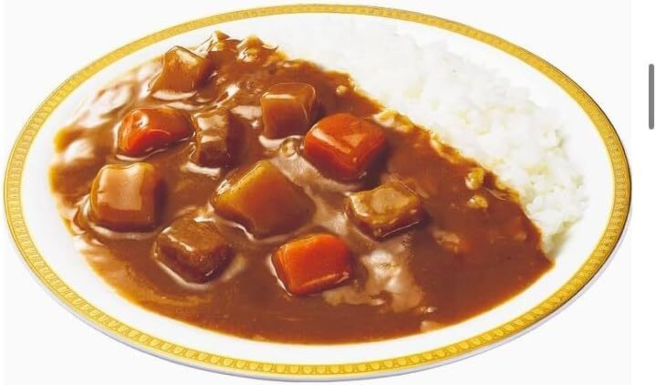 原材料:野菜(じゃがいも(中国)、にんじん)、成形豚肉、とうもろこし油、小麦粉、砂糖、食塩、カレー粉、炒めたまねぎペースト、トマトペースト、ポークブイヨン、たまねぎペースト、香辛料、にんにくペースト、酵母エキス、たん白加水分解物/調味料(アミノ酸等)、増粘剤(加工デンプン、増粘多糖類)、カラメル色素、酸化防止剤(V.C)、甘味料(アセスルファムK、スクラロース)、(一部に小麦・大豆・鶏肉・豚肉・ゼラチンを含む)