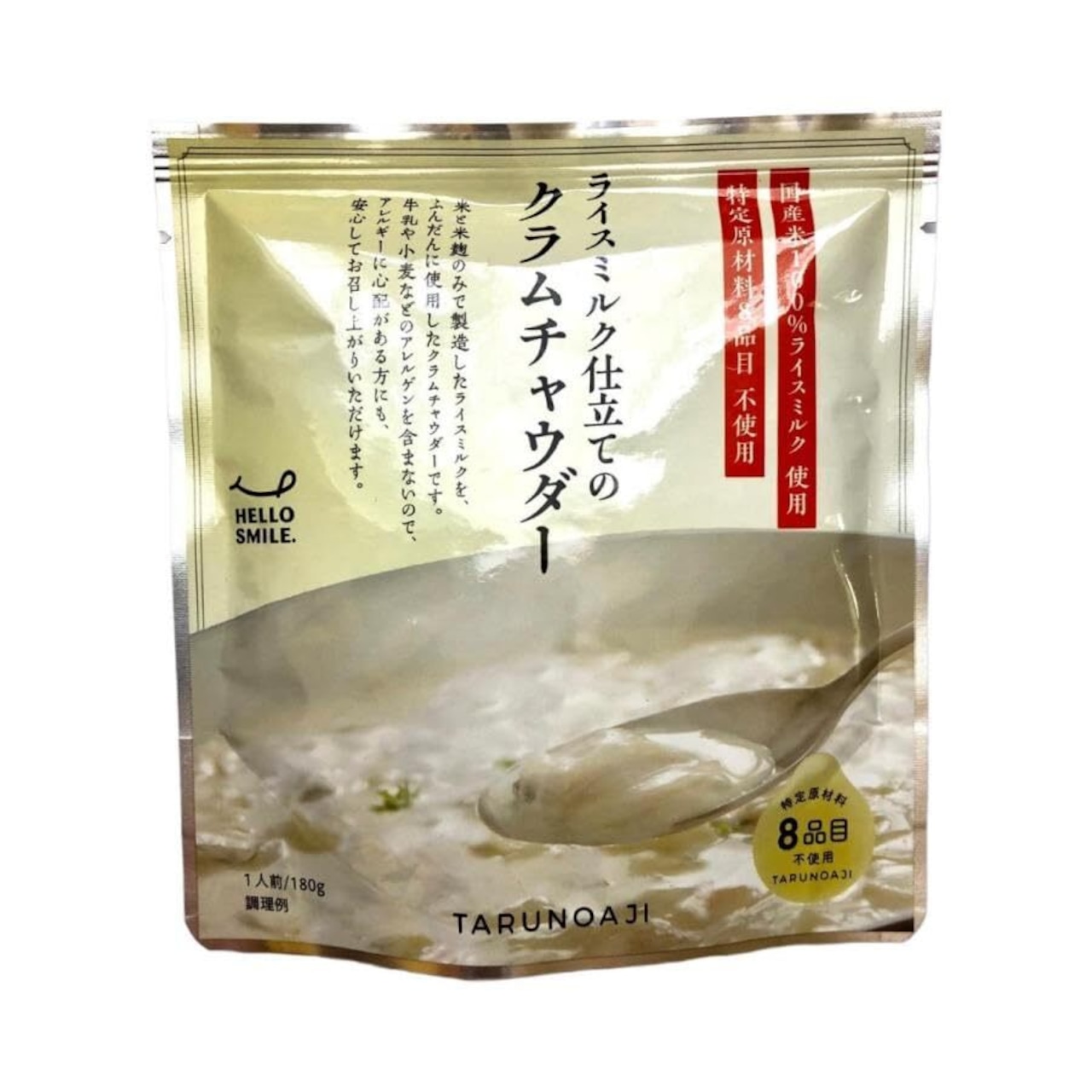原材料:ライスミルク(国内製造)、豆乳、じゃがいも、アサリエキス、アサリ、玉ねぎ、米油、ホタテエキス、片栗粉