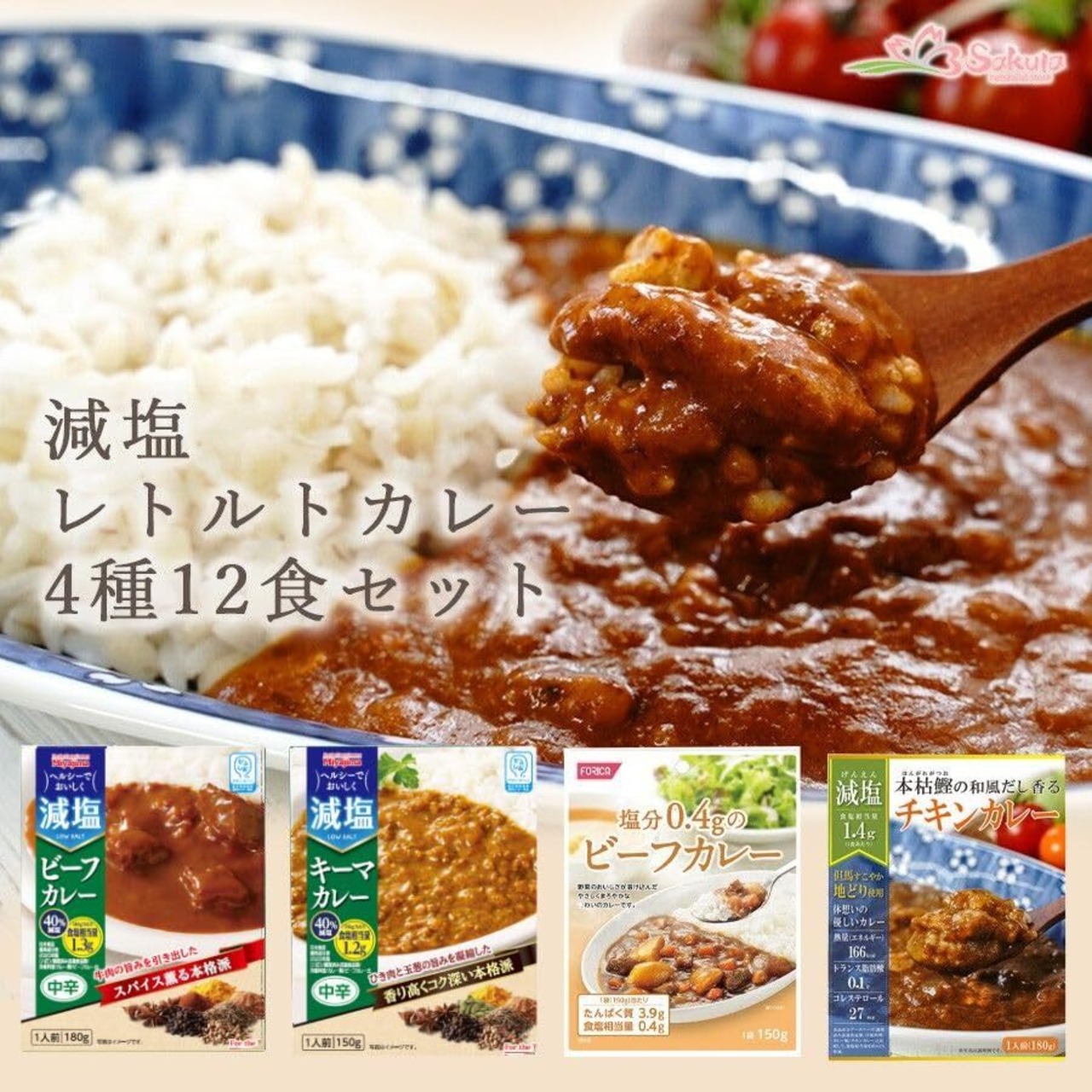 Earthink 減塩レトルトカレー 4種12食 詰め合わせセット 減塩食品 レンジ対応 ギフト レトルト食品 常温保存 非常食 プレゼント お中元 お歳暮 御祝 御礼