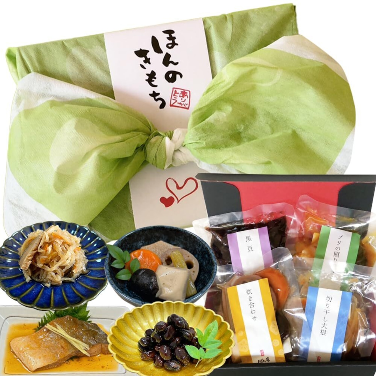 博多手土産小町 手作り惣菜 レトルトギフト 風呂敷包 贈り物 常温保存 御礼 お祝い お返し 退職祝 心ばかり ほんの気持ち お疲れ様ギフト おつカレー 健康 惣菜 詰め合わせ 九州博多おばんざい レトルト 食品(ほんの気持ちの和惣菜)