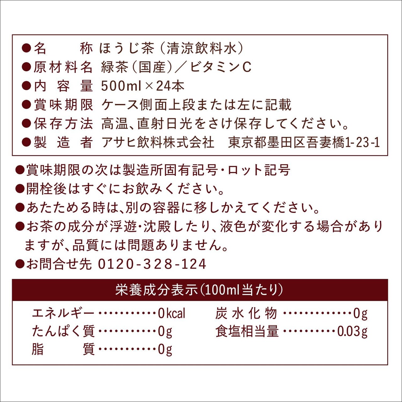 アサヒ飲料 ほうじ茶 ラベルレスボトル 500ml×24本 [お茶]