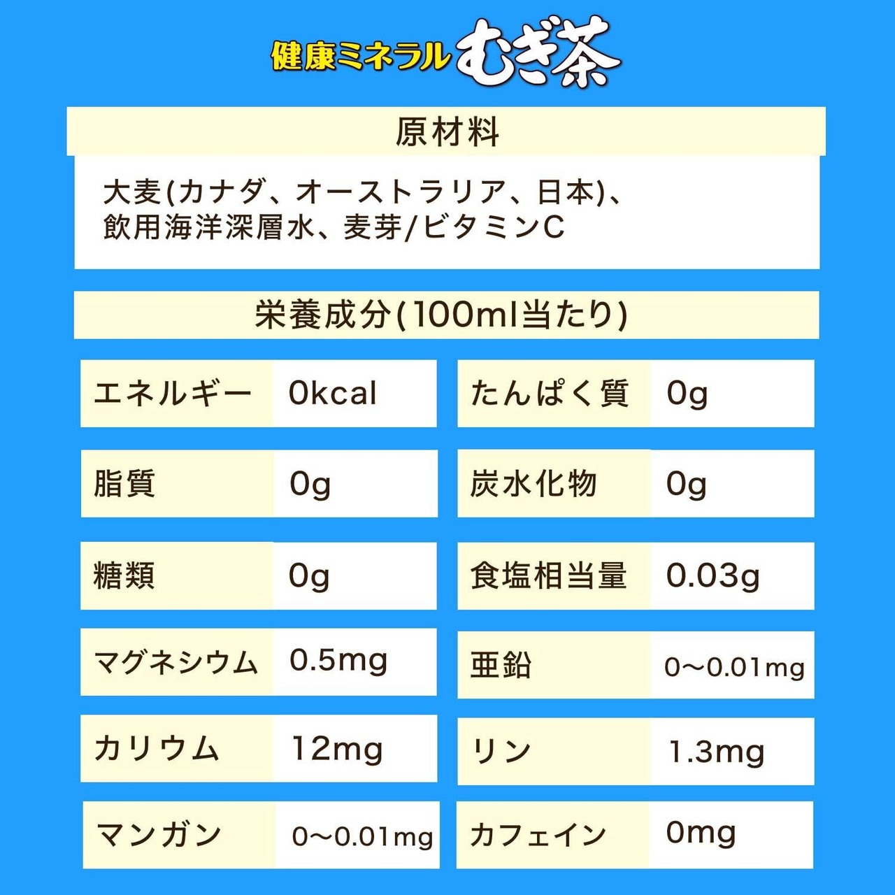 大麦(カナダ、オーストラリア、日本)、飲用海洋深層水、麦芽/ビタミンC