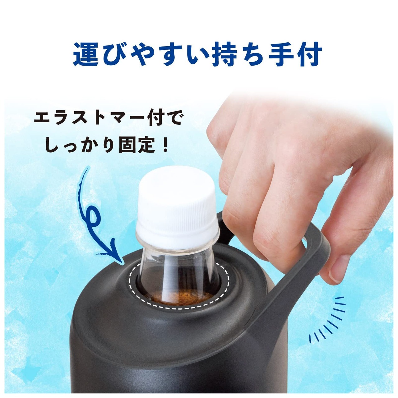 500ml〜650mlサイズのペットボトルに対応。持ち手付きで運びやすい