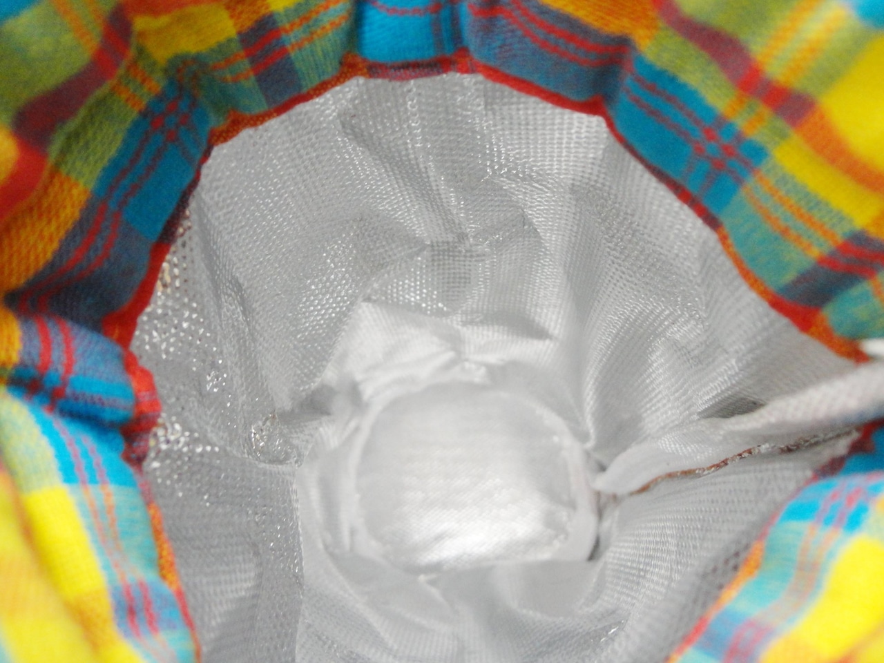 材質:外側生地:綿、内側生地:アルミ、中芯:ポリウレタンフォーム、ひも:ポリプロピレン