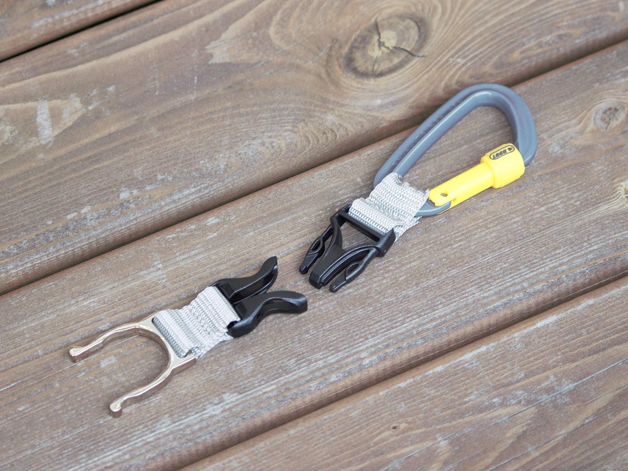 「カラビナ」と「ペットボトルフォルダー」が一体型になった商品
