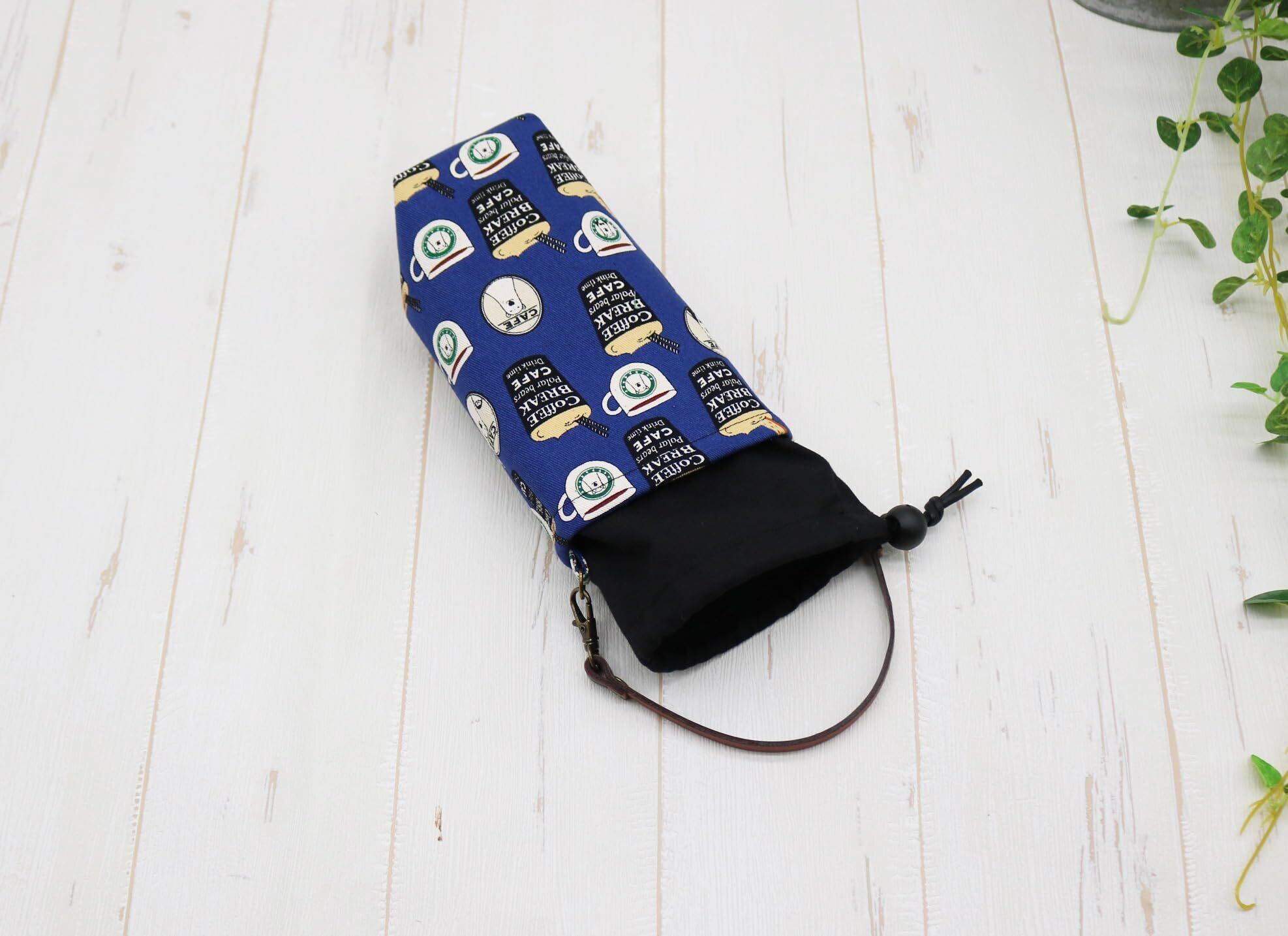 ペットボトルカバー 保冷保温 ペットボトルケース 水筒カバー マグボトルカバー 巾着 500~600ml 革持ち手 しろくま (しろくまカフェ ネイビー)