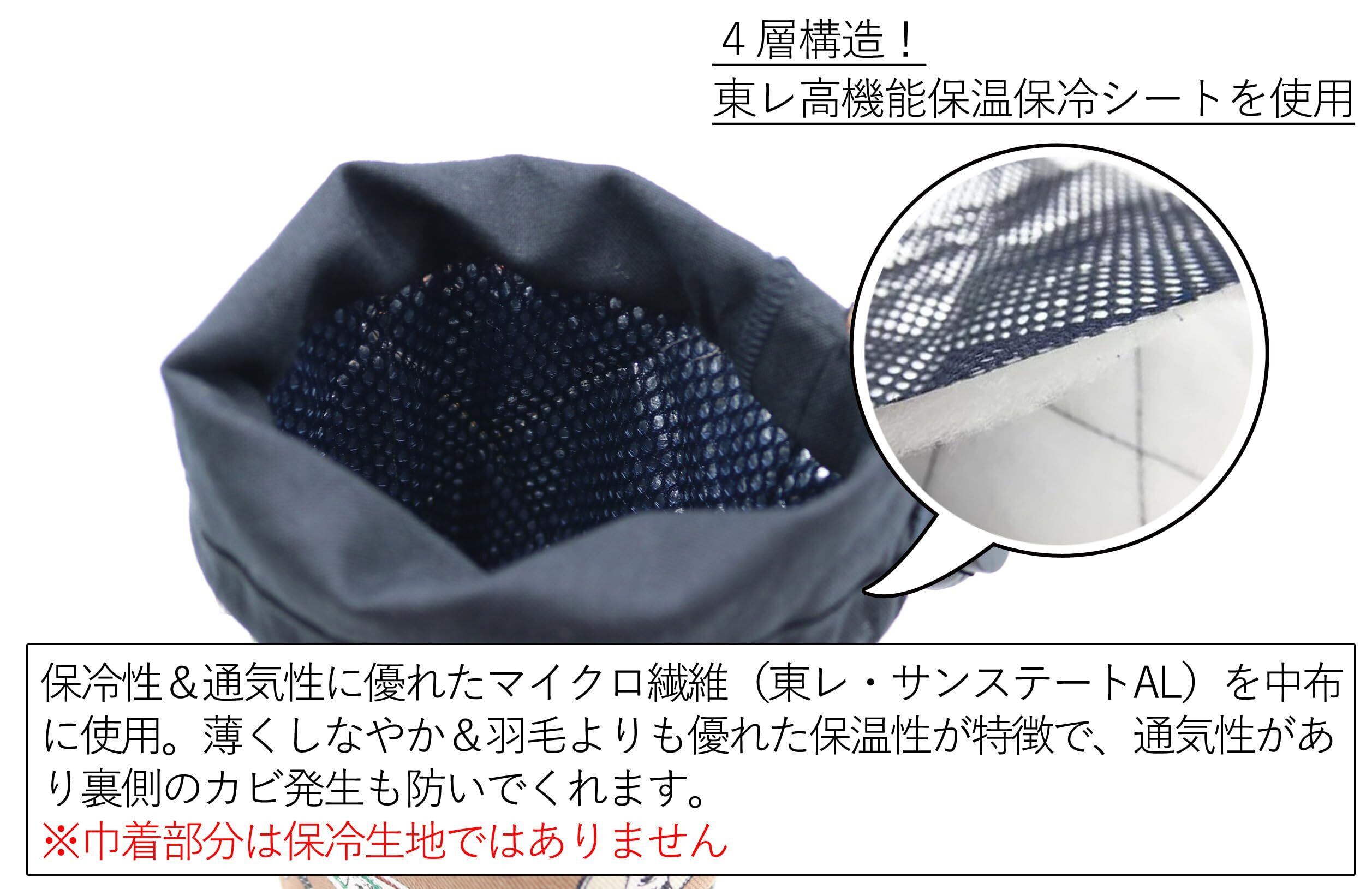 一般的な保冷保温シートとは違い、裏にカビが生えたりはがれてくることがなく布のような柔らかさがあります。冷たいものを入れても結露しにくい素材です。