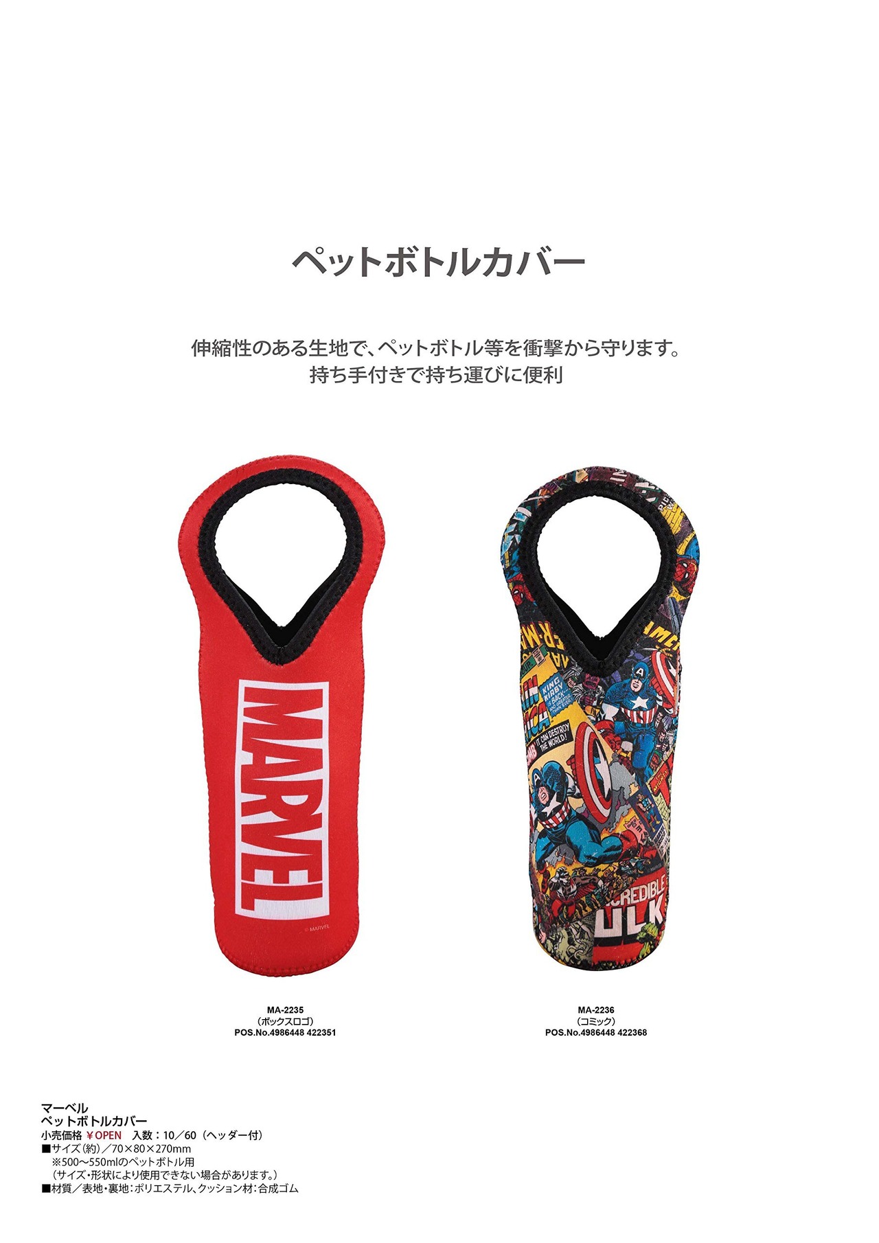 伸縮性のある生地で、ペットボトル等を衝撃から守ります。持ち手付きで持ち運びに便利。