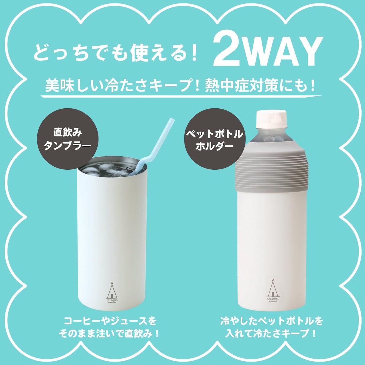 OGURA 超軽量 テント 2way ステンレス ペットボトルホルダー タンブラー 真空 断熱 500~600ml対応 ホワイト×グレー