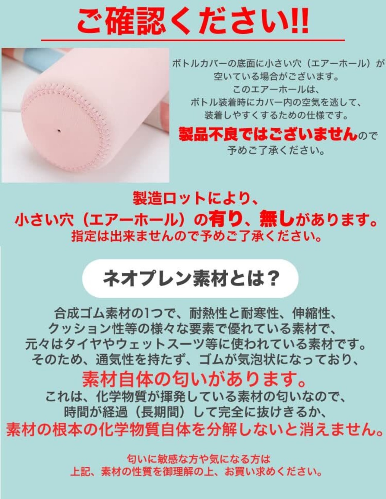 このエアーホールはボトル装着時にカバー内の空気を逃して装着しやすくするための仕様です。