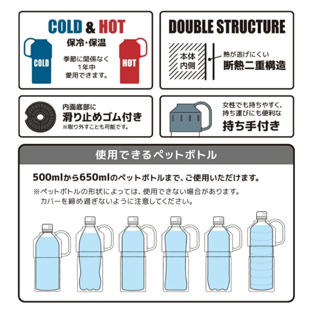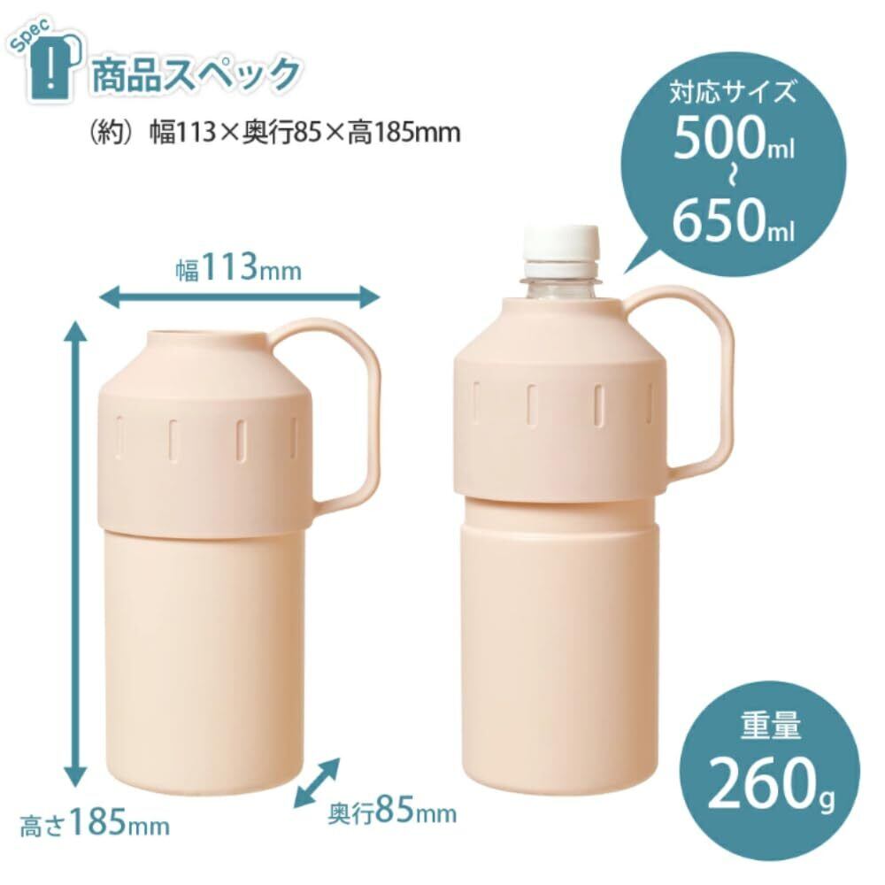 500~650mlのペットボトル対応。持ち手付きで女性でも持ちやすい。 ※容量500~650mlであれば四角いペットボトルも対応になりますが、形状によりまして対応出来ない場合もございます。