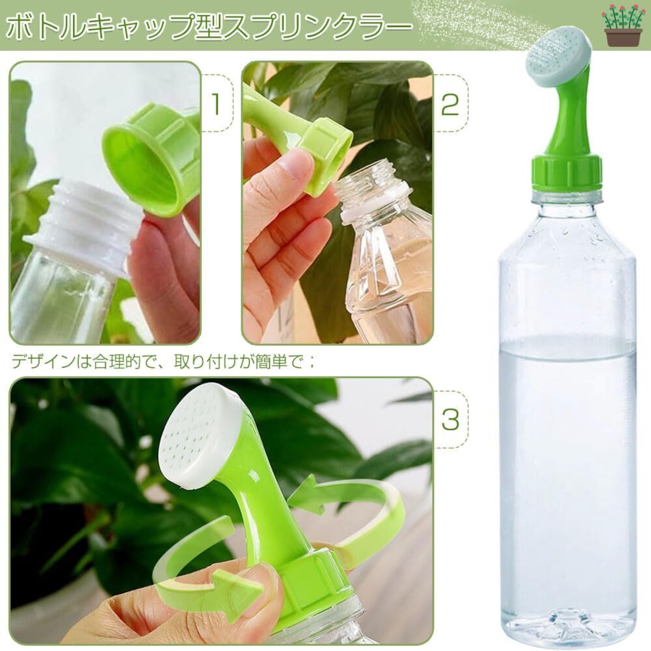 ボトルキャップ 散水スプリンクラー 6個セット ミニ プラスチック散水 給水ノズル 灌漑ノズル 軽量じょうろ ペットボトル 水やり 家庭用散水ノズル 鉢植え栽培 オフィス園芸 観葉植物 家庭用散水道具(グリーン)