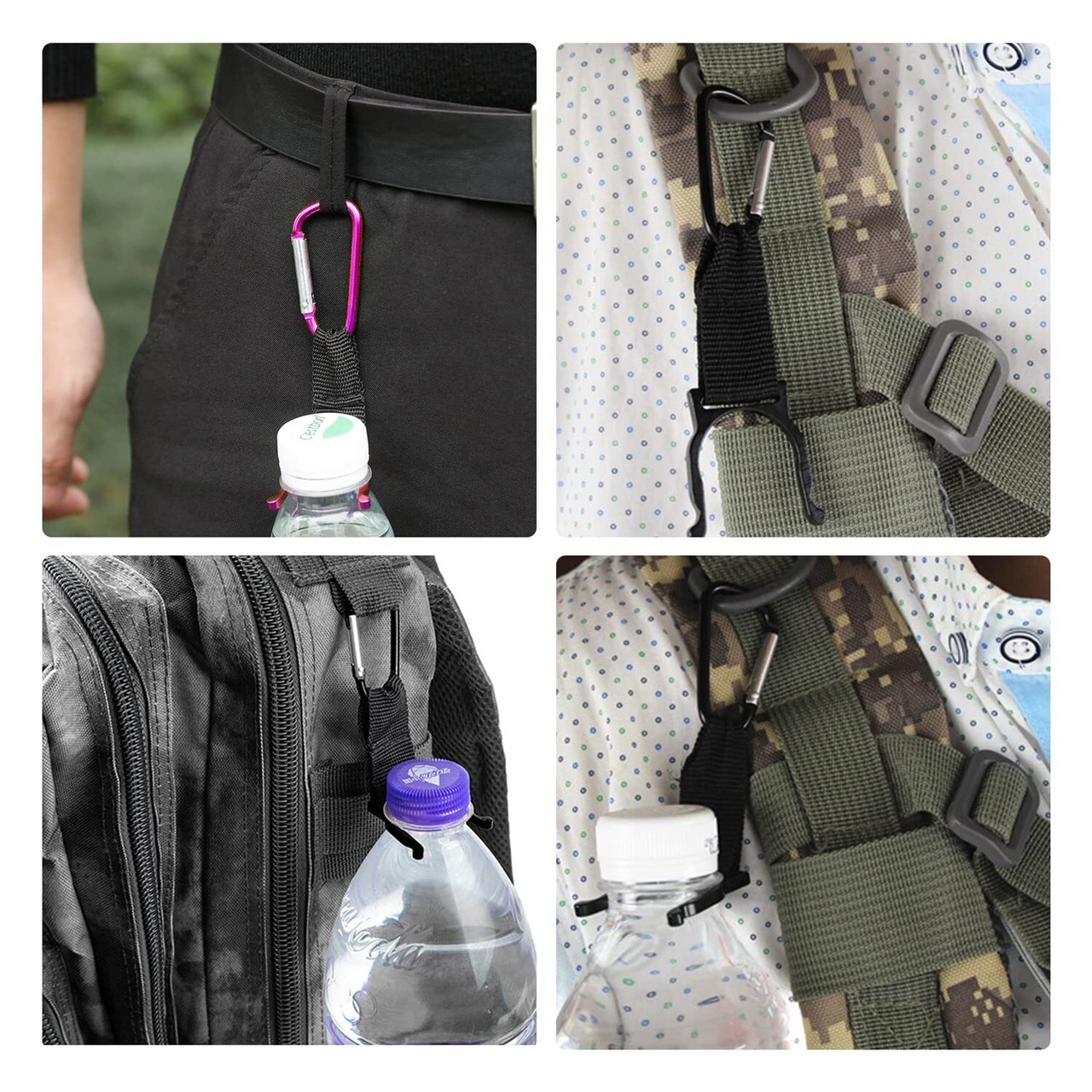 Doyime ペットボトルホルダー カラビナ付き 5個セット ドリンク ホルダー アウトドア 登山 キャンプ ハイキング 水分補給 5色 パープル ブラック 赤 シルバー グリーン