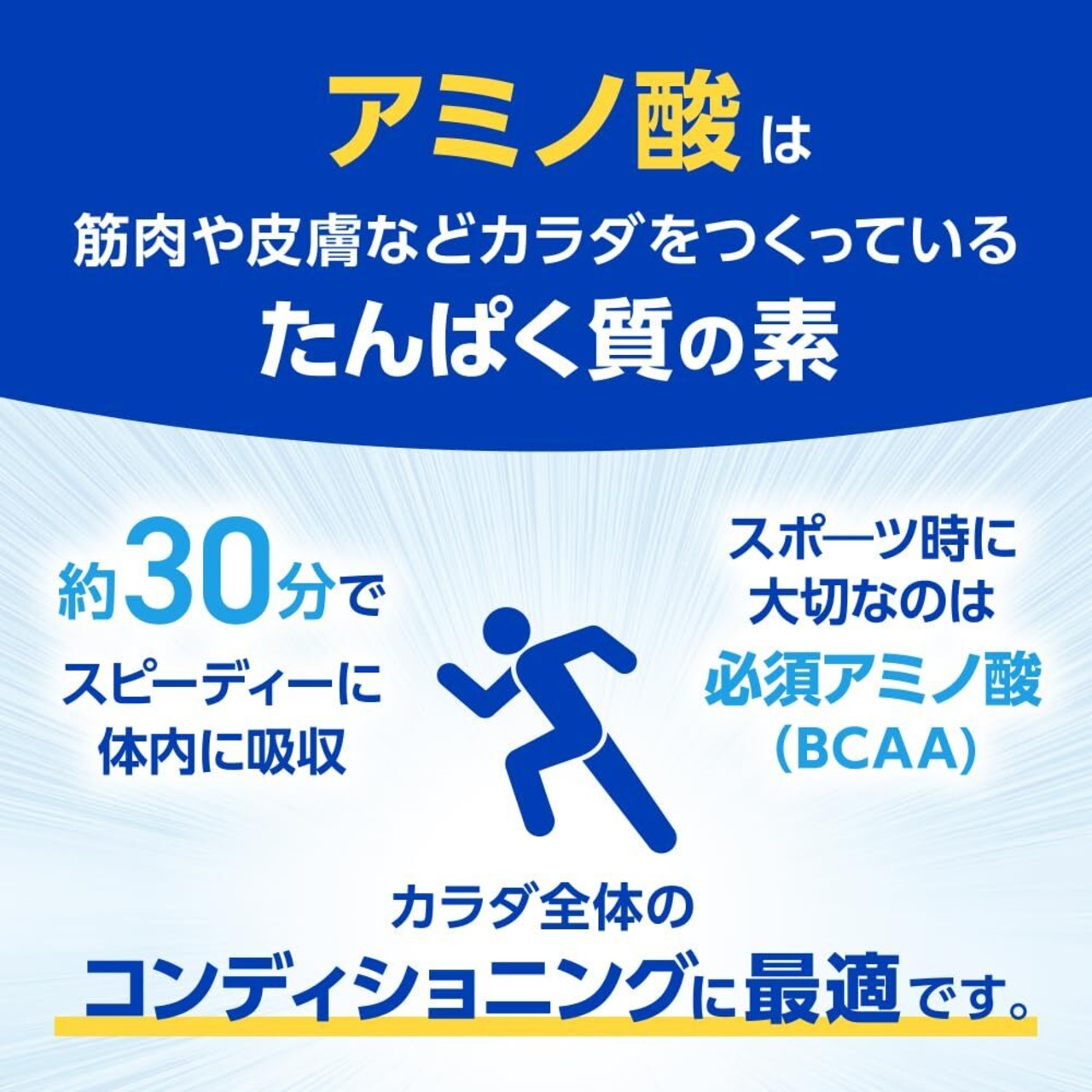 必須アミノ酸(BCAA)2000mg配合。運動中に失われる水分とアミノ酸を速攻吸収できるスポーツドリンク。