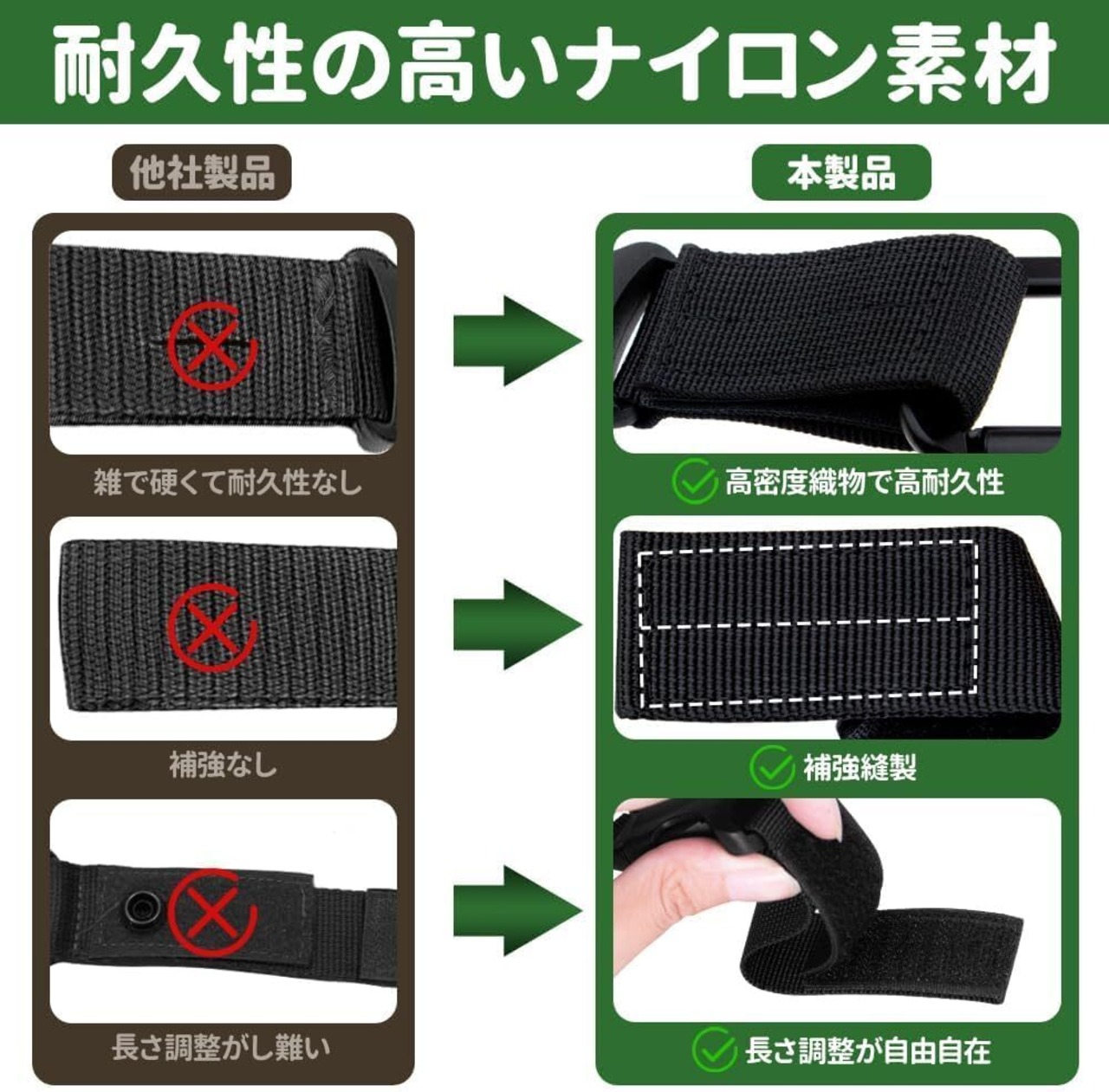 【トリプルセキュリティ構造】** 航空機用アルミ合金カラビナ×耐摩耗マジックテープ×強化樹脂ボタンの三位一体設計。最大3kg耐荷重で1.5Lボトルも安心。